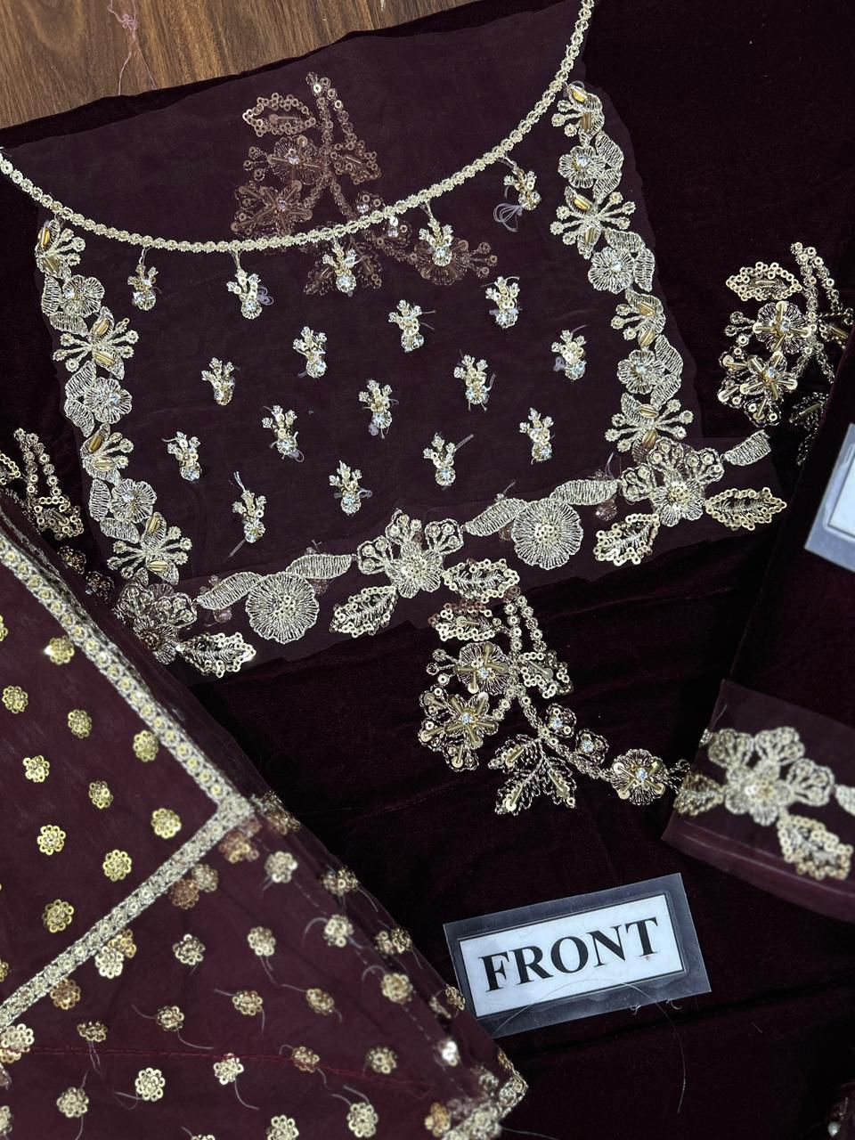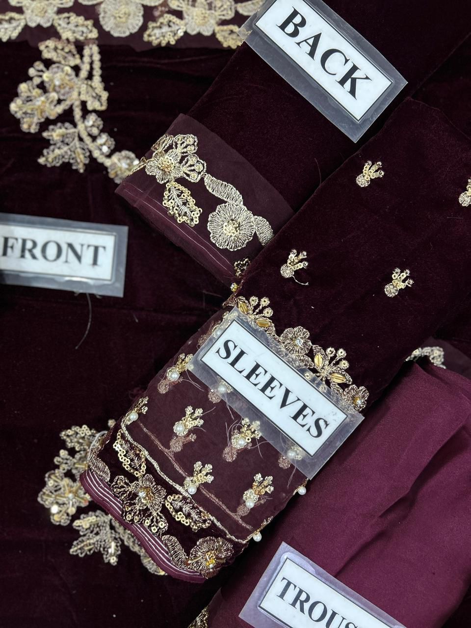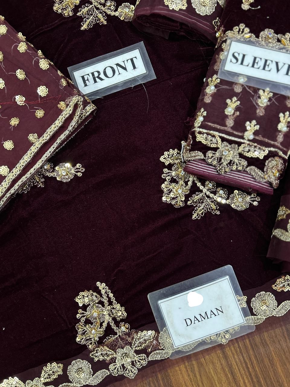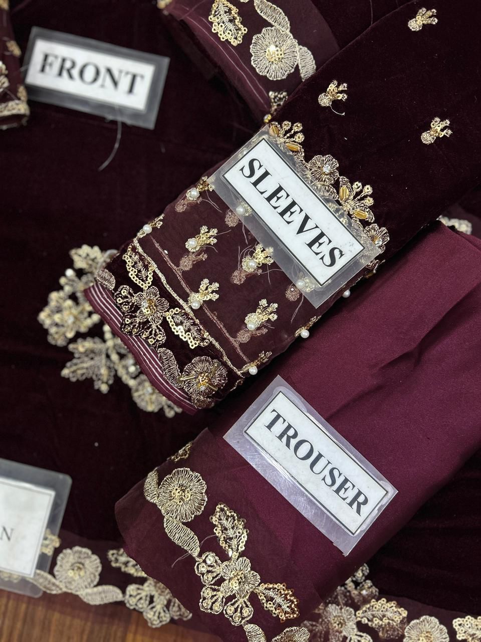 *Velvet Shirt, Organza Dupatta and Raw SilkTrouser*