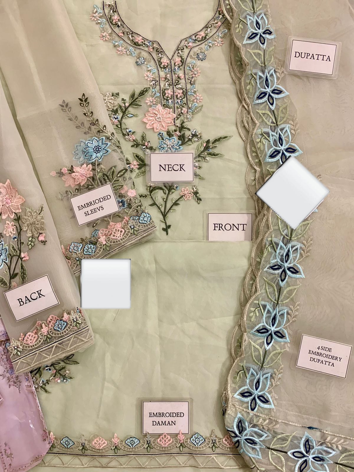 organze fully heavy alternet embroidered spengle work front with fully hand emblishment adha work with embroidered daman lace