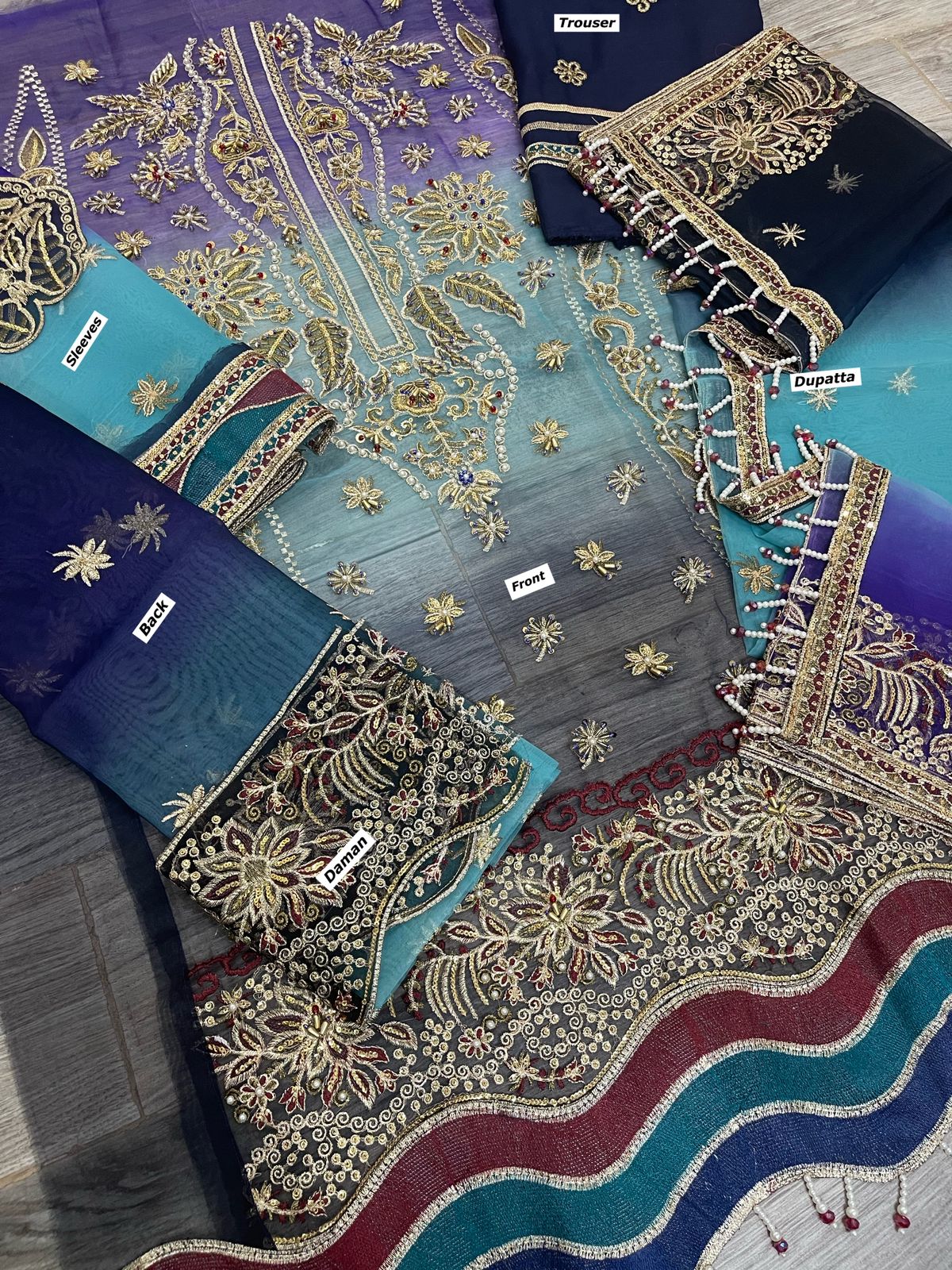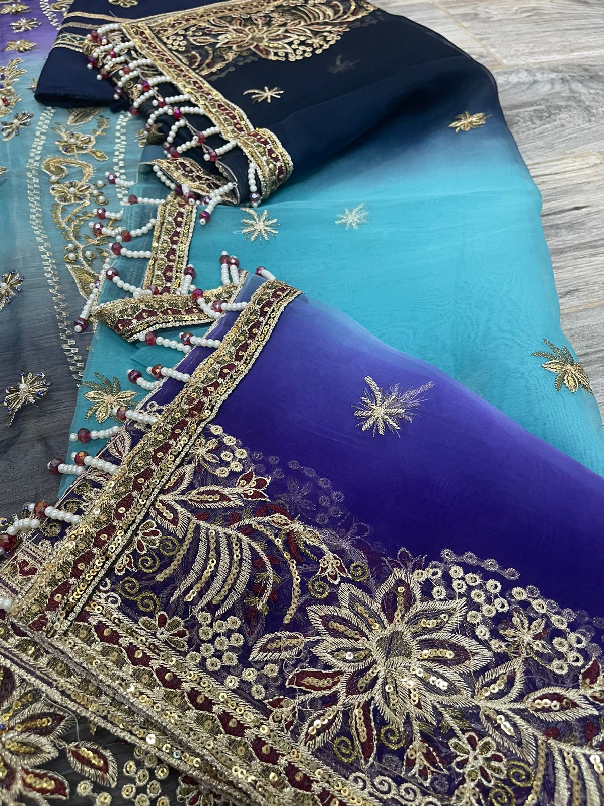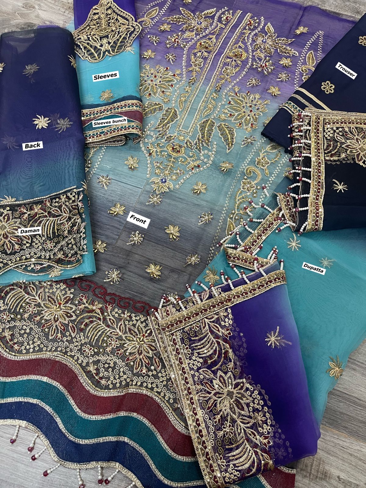 ✔Fully Embroidered Tie n Dye Slevees With Squence Work