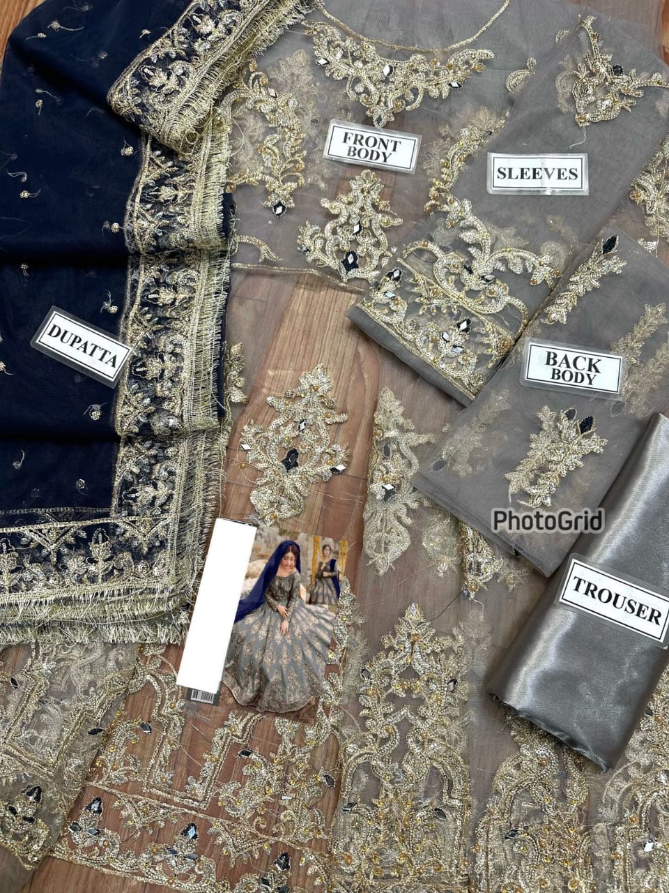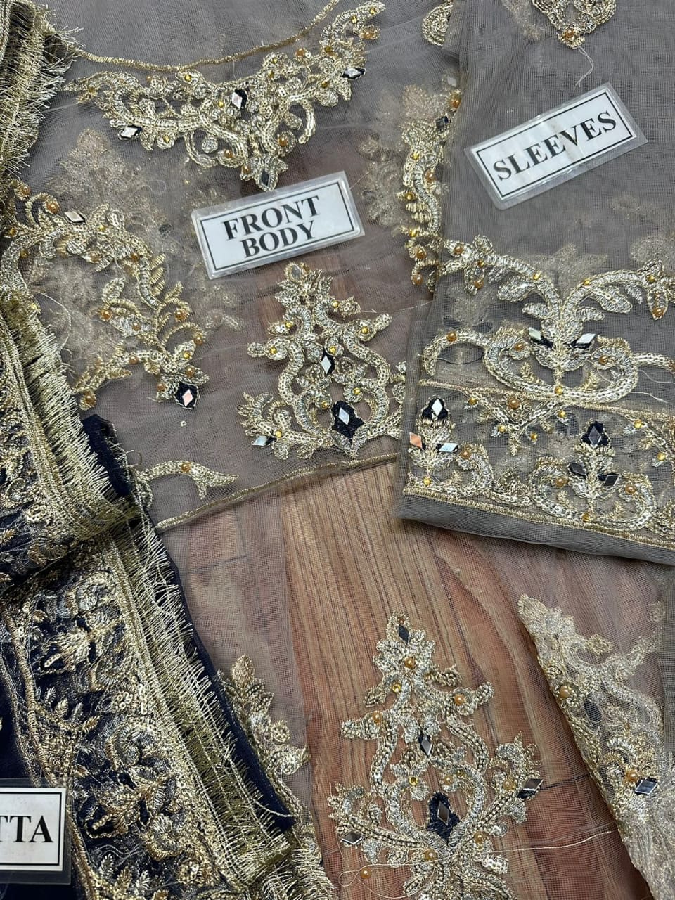 ✔ Heavy Embroidered Front With Sequence, Handwork & Mirror Work