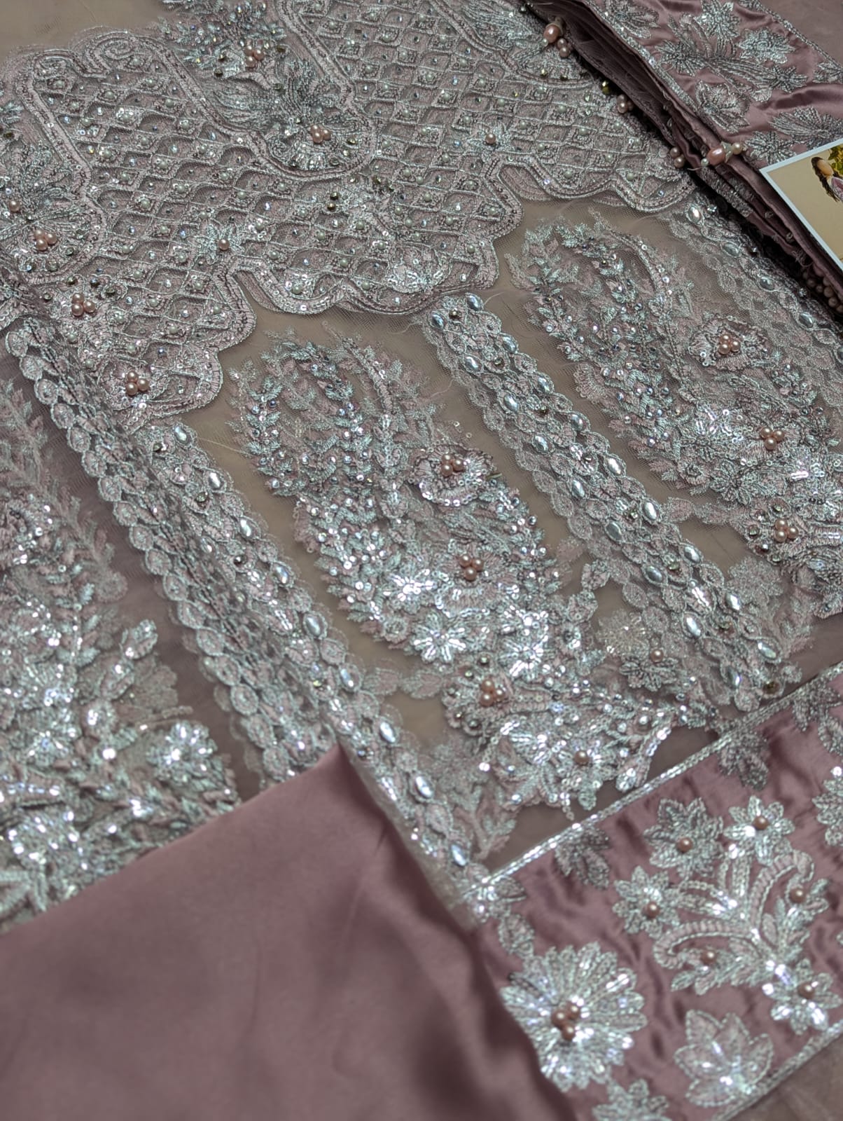 Front net heavy zari work embroidery with sequence work & stone hand work