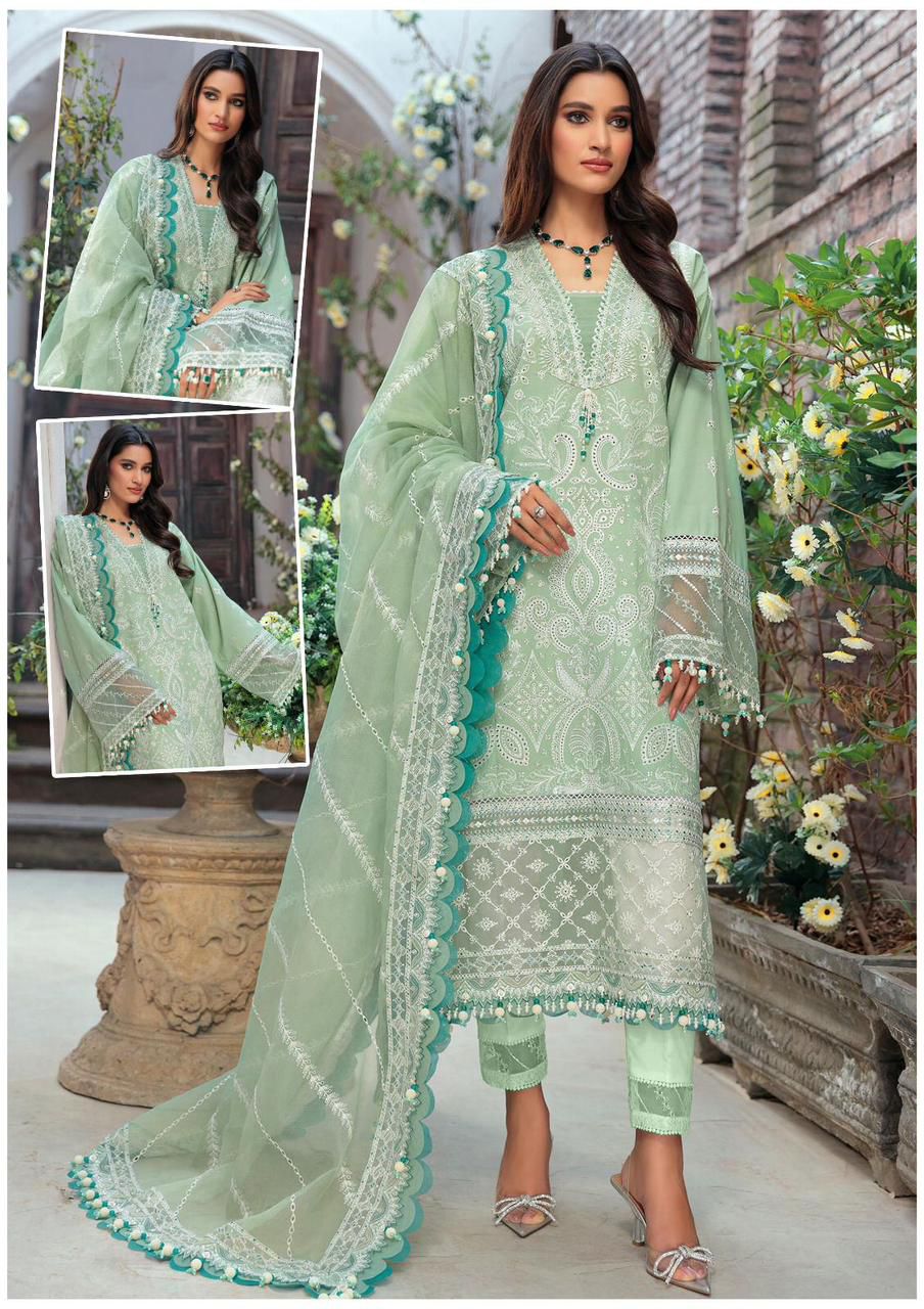 •Organza heavy embroidery dupta with 4 side emb