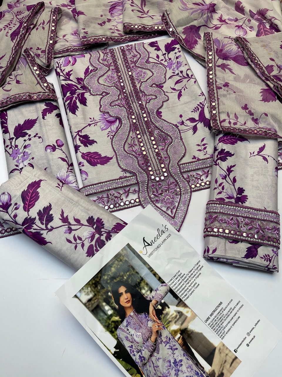 •Printed Chiffon Dupatta with 4 side embroidered 9mm sitara lace