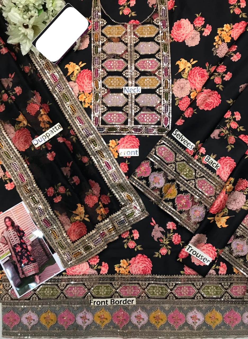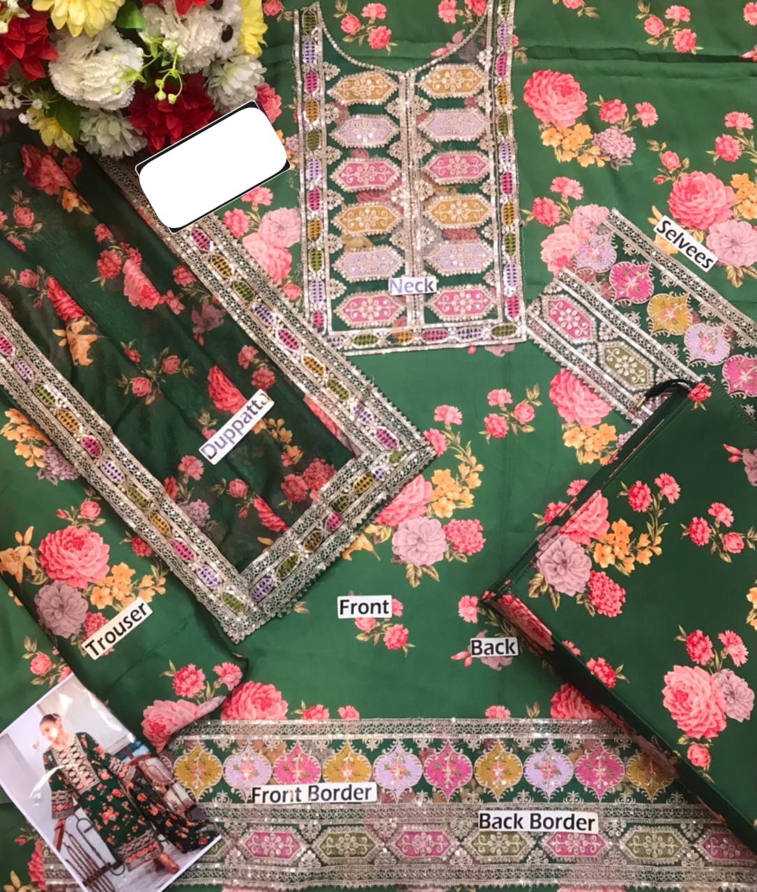 â–ªHeavy Embroidered Silk Dupatta with 04 Sides Cut work Border on Fabric