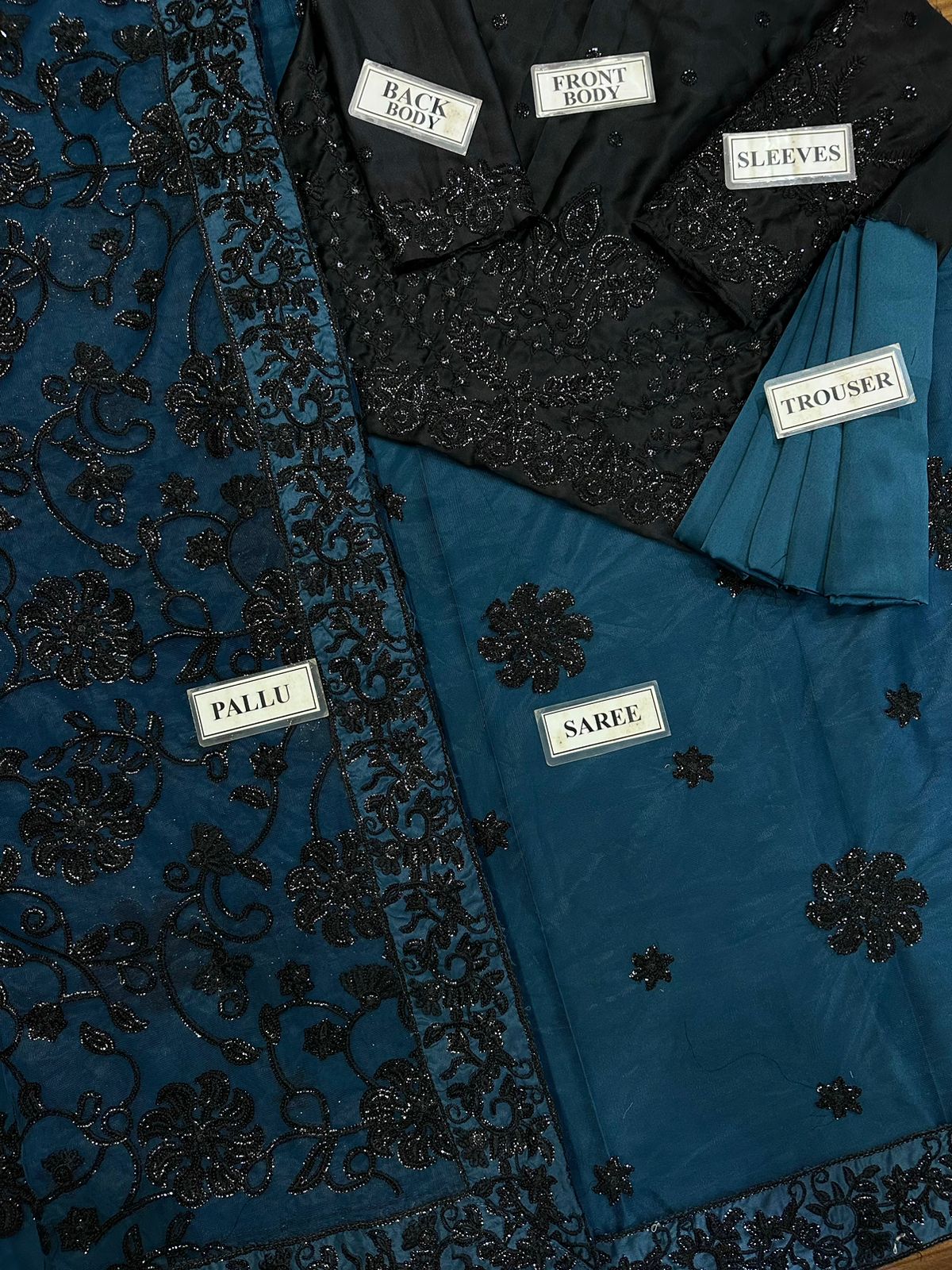 net fully heavy embroidered spengle work gherra & fully heavy embroidered spengle work pallou with 4 side heavy embroidered spengle work pallou boarder attachment & gherra embroidered spengle work boarder attachment