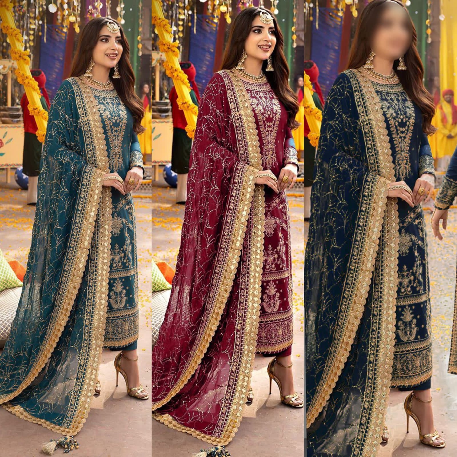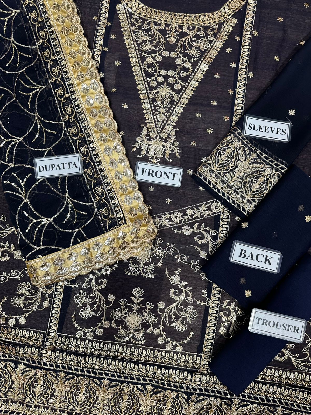 BRAND:ASIM JOFA chiffon sequence embroidered unstitched 3pc✓