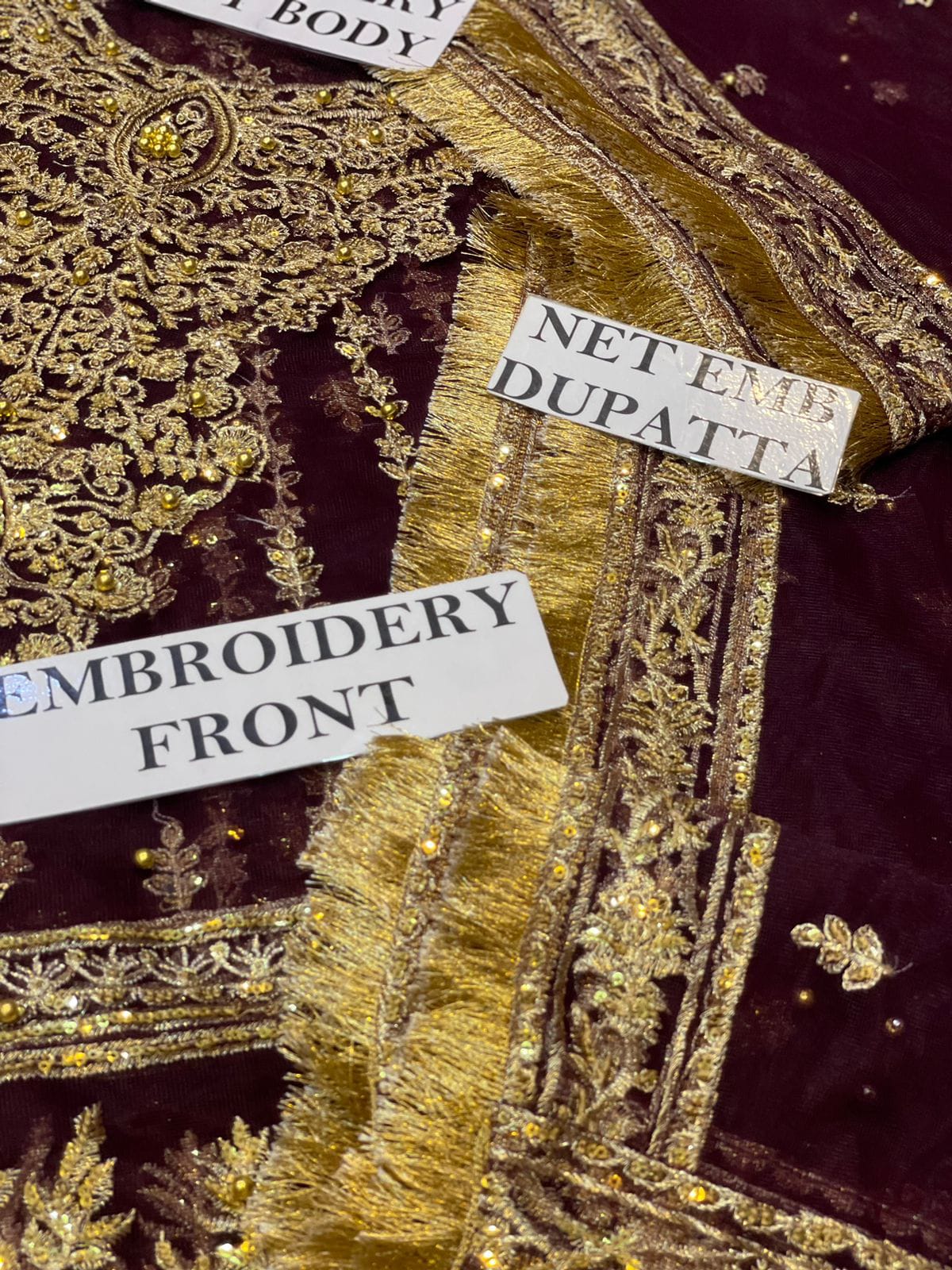 💜 HEAVY EMBROIDERY FRONT NECK WITH PUNCHED BALLS WORK, THREAD WORK & ZARI WORK