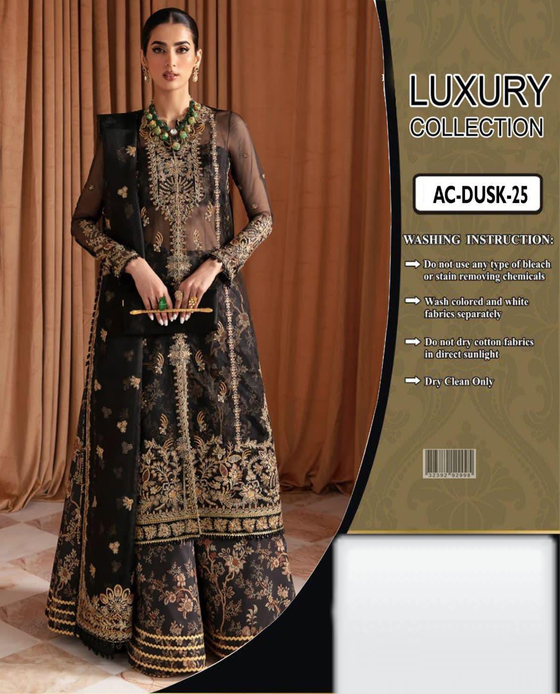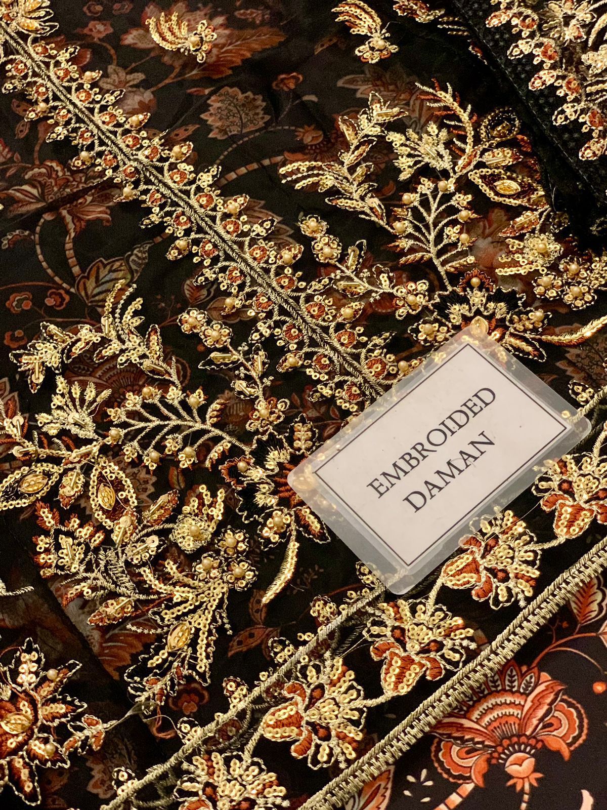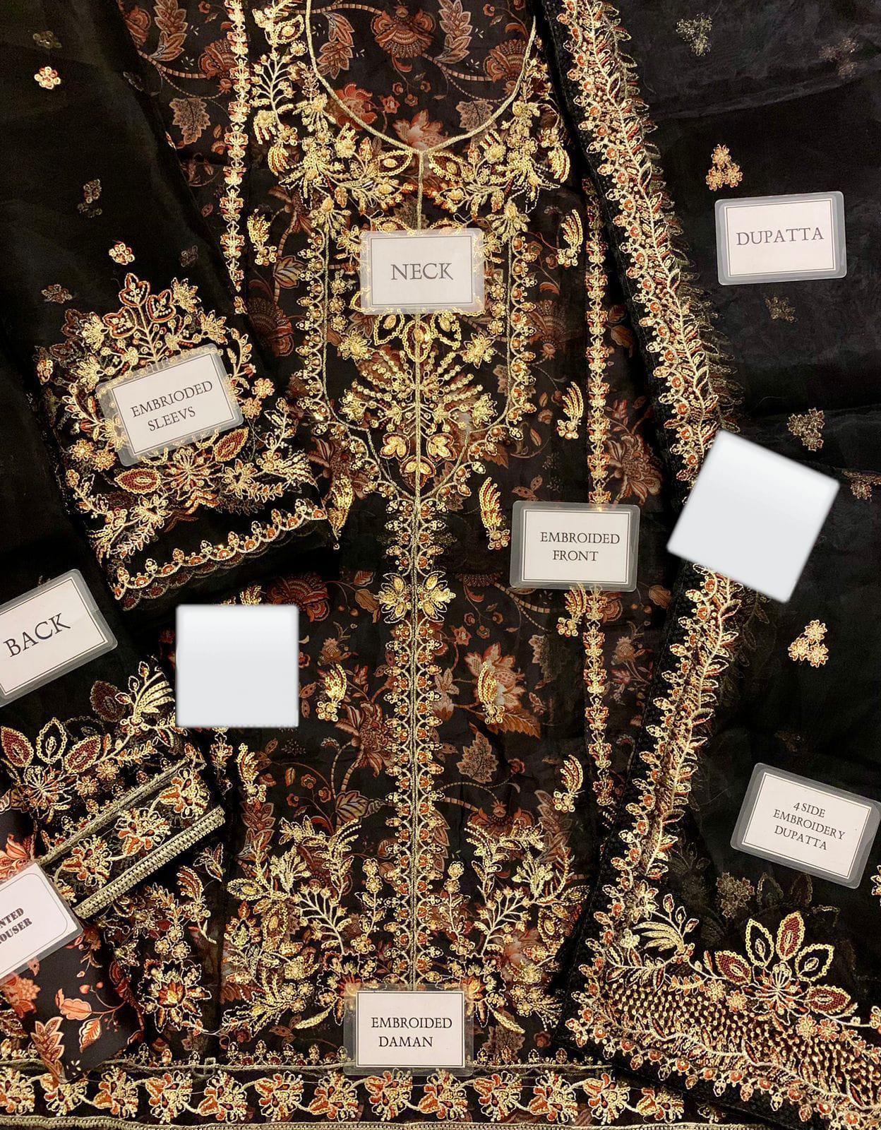 organze fully embroidered spengle work back with embroidered spengle work back daman boarder