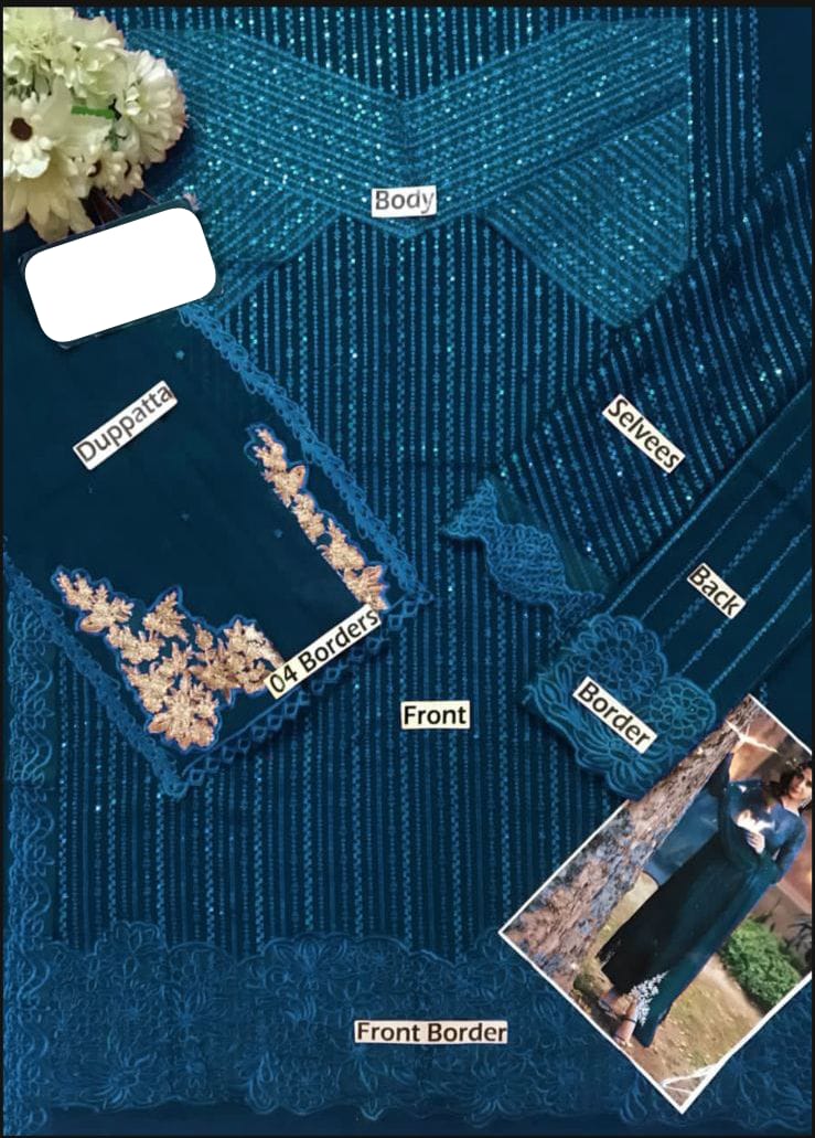 1️⃣Front Full Heavily Embroidered With Same zinc Sequins.