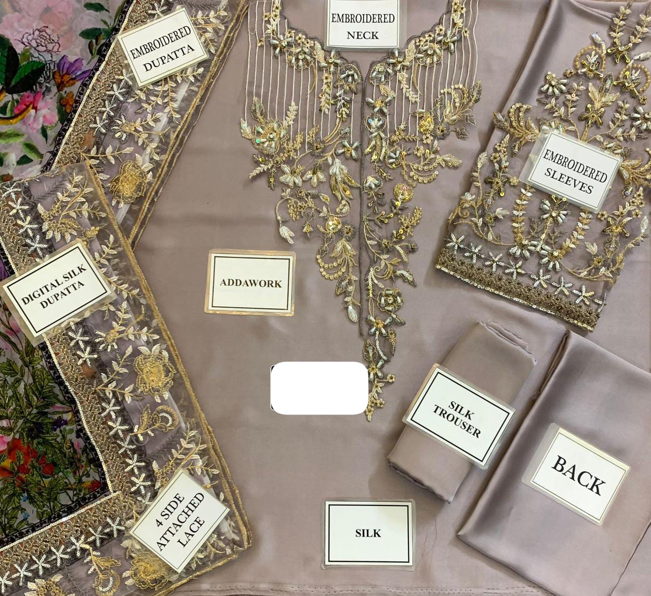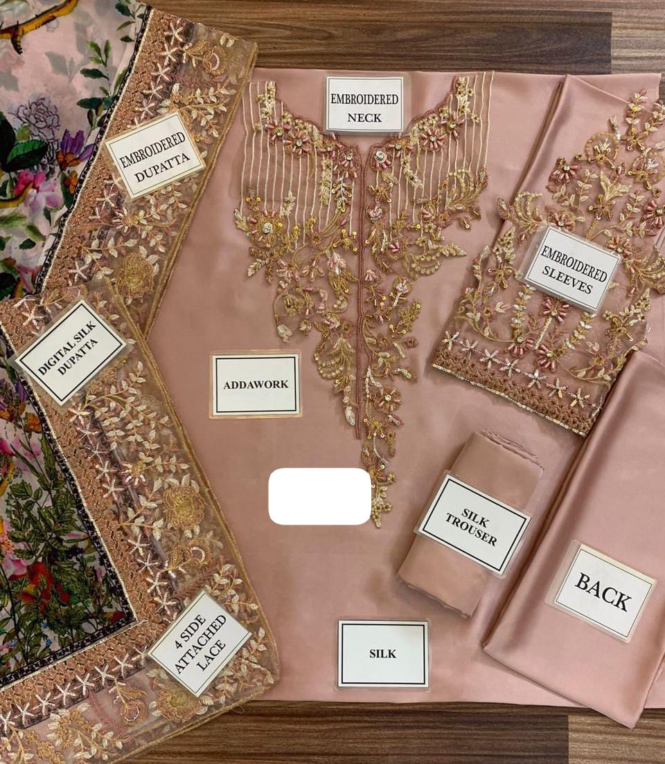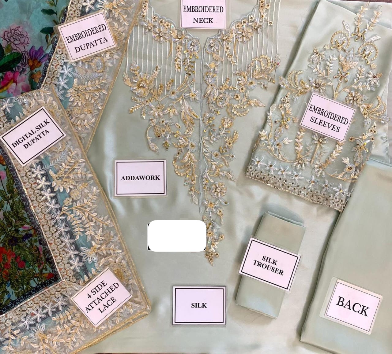 BRAND:*AZURE* shamooz silk embroidered & adda work luxury unstiched 3pc✓