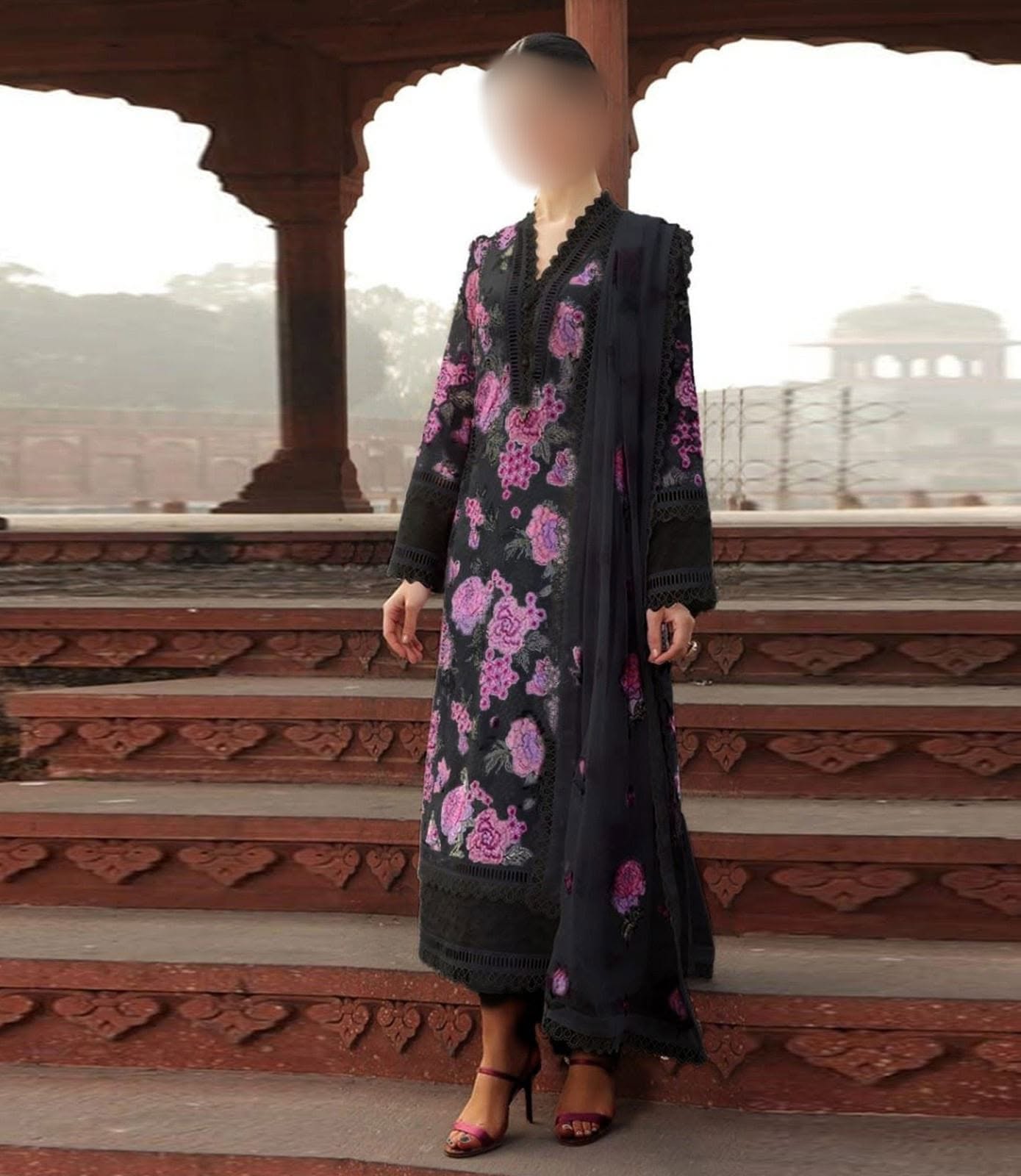 ●DUPATTA EMBROIDERED *with 4 side embroidered border*