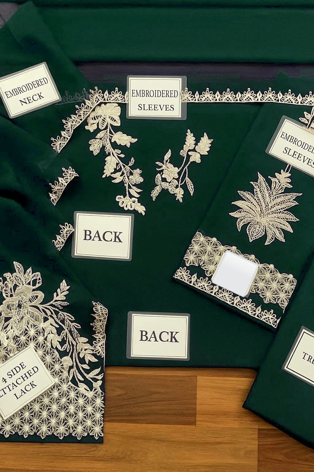 CATIONIC CHIFFON HEAVY ALTERNATE EMBROIDERED SELEEVES CUFF ON FABRIC