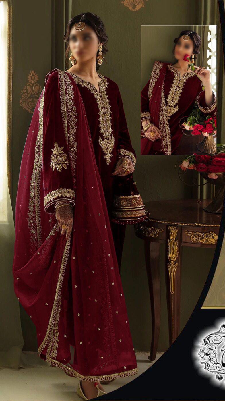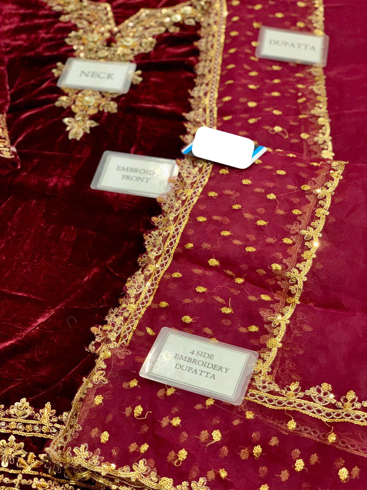 velvet fully heavy embroidered spengle work neckline with fully heavy hand emblishment adha work neckline