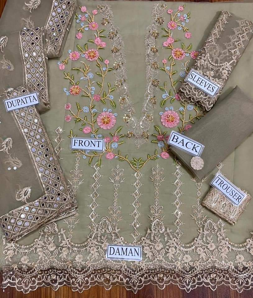 🔹FRONT EMBROIDERD ON ORGANZA 🧶HANDMADE KORA DABKA ADDI WORK Same Look Like Real