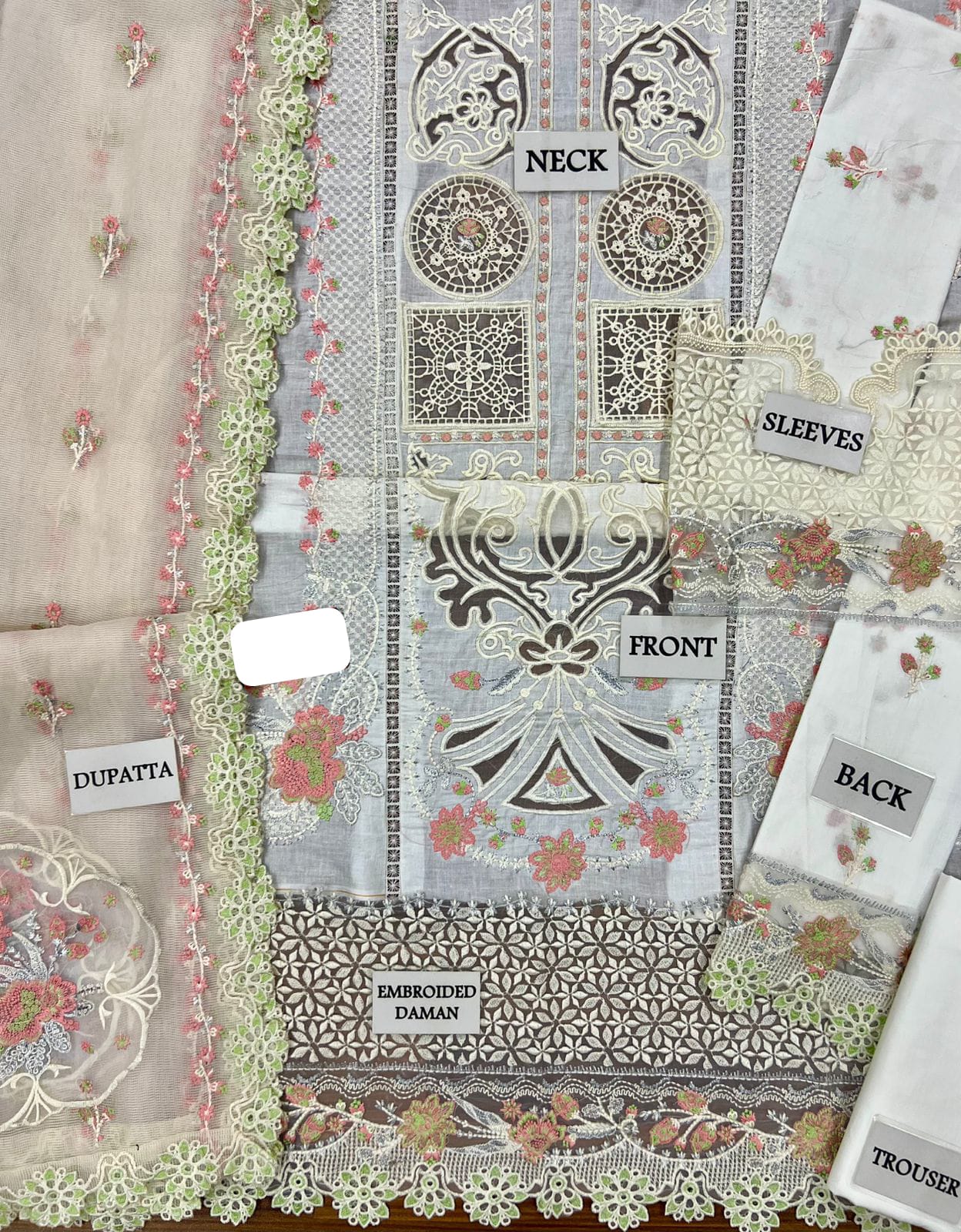 â–ªFully Heavy Embroidered Lawn Front LASER CUTTING with Chicken Kari Work