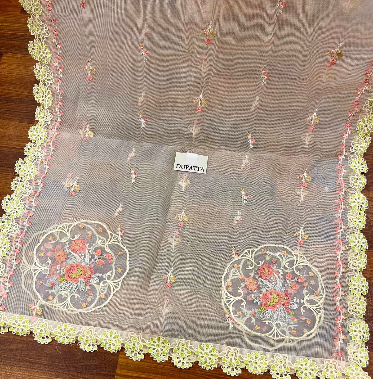 â–ªHeavy Embroidered Organza Dupatta With 4 Sides Cut work Embroidered Borders and also 4 corners Applic bunch. Ready To wear Dupatta