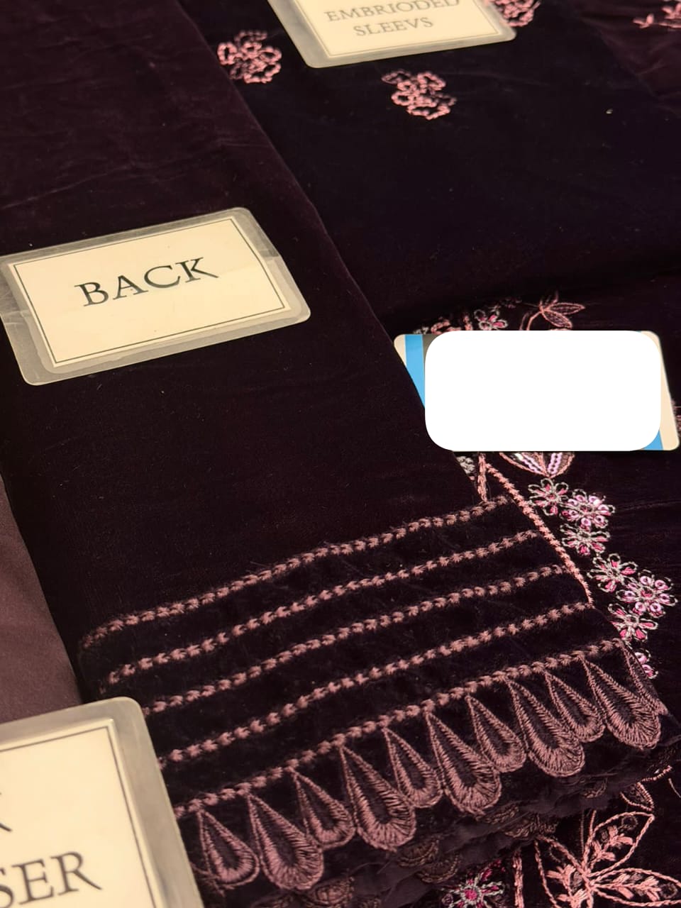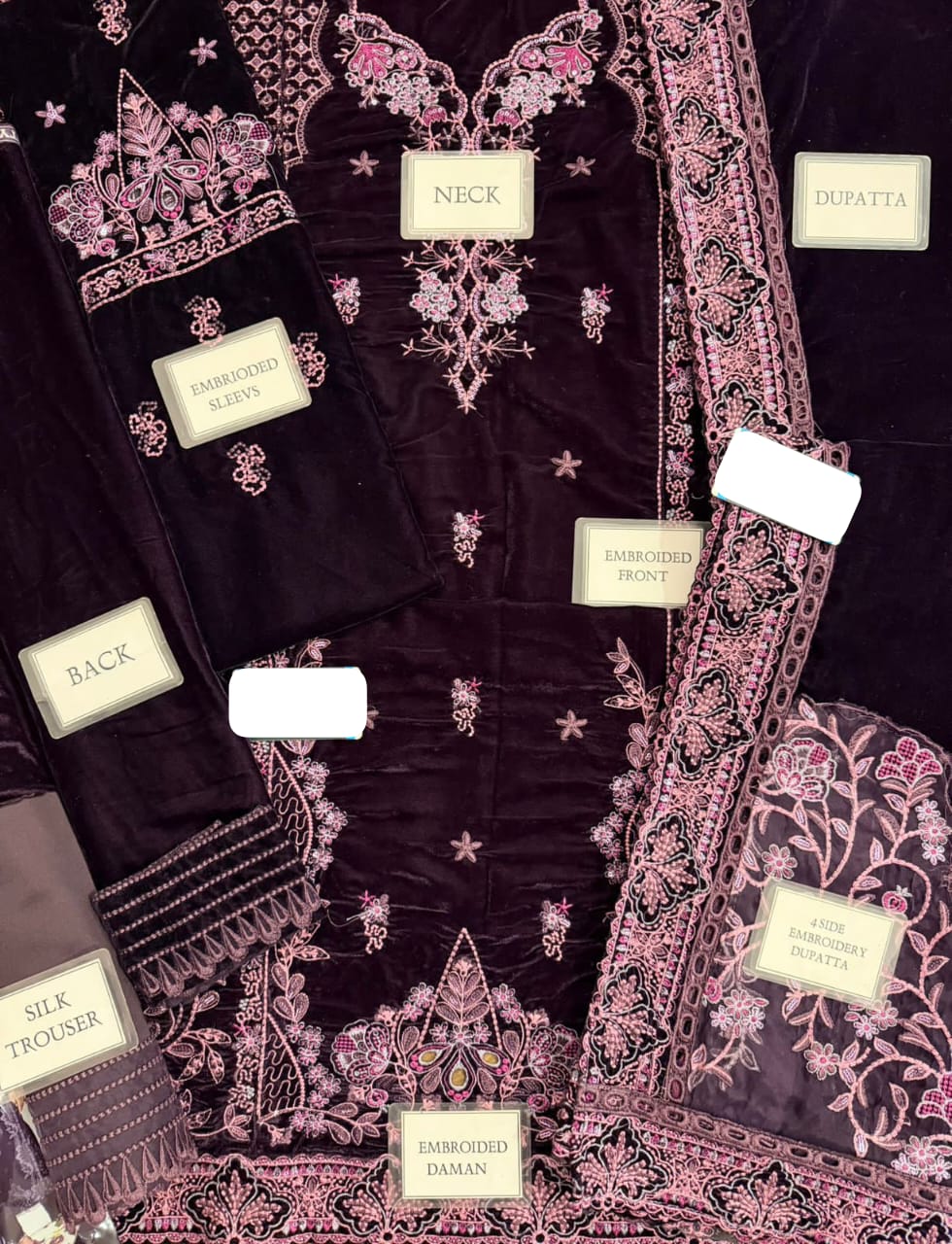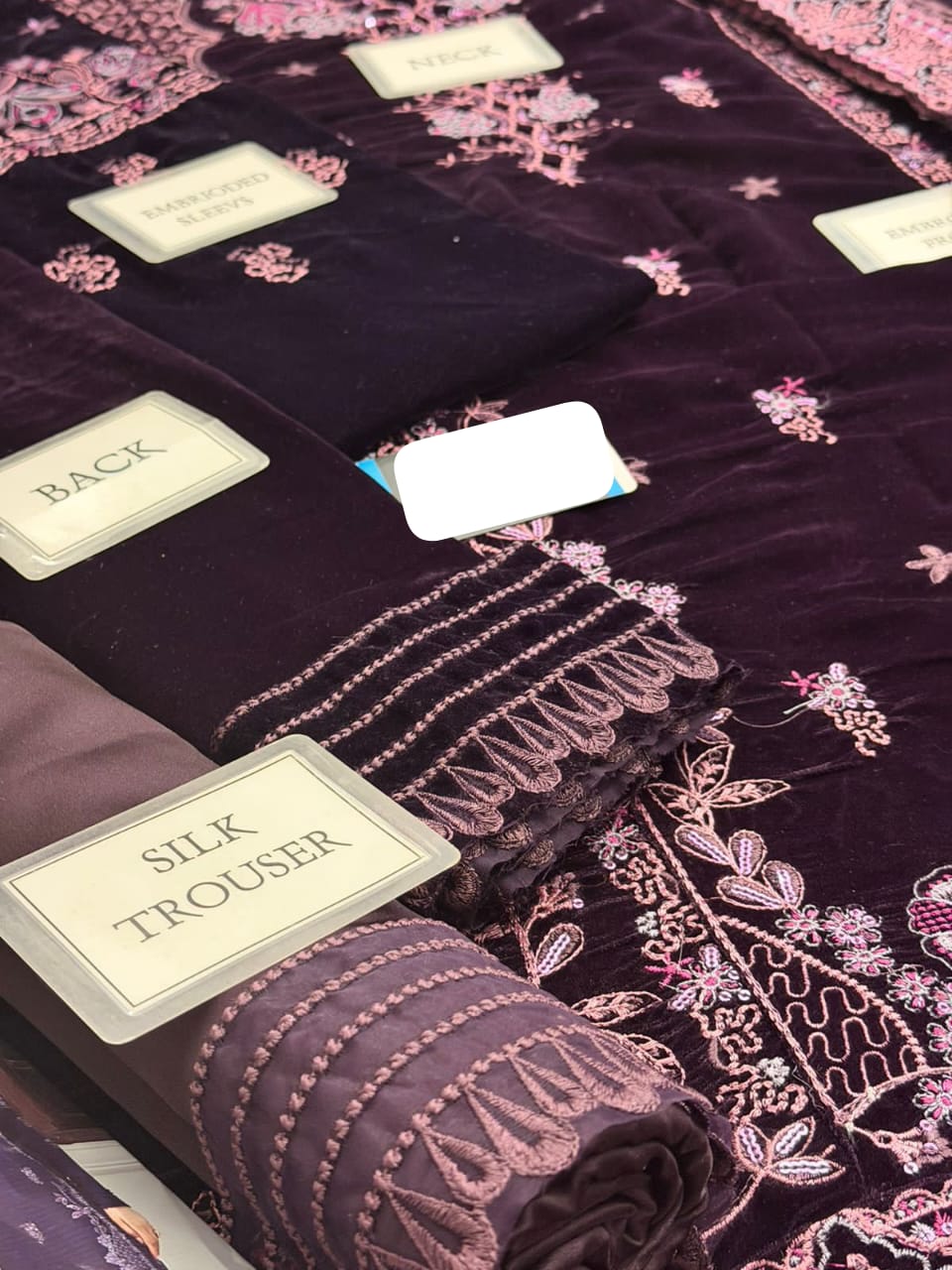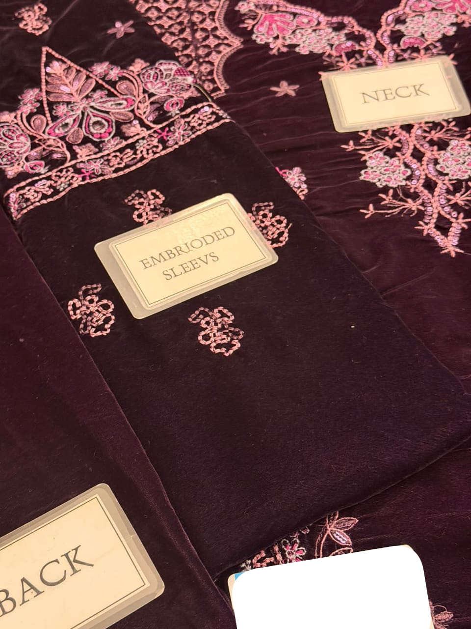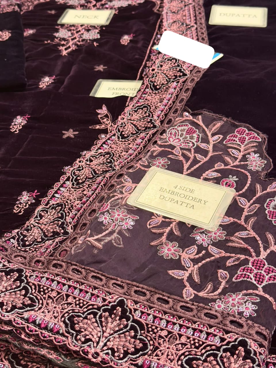 *VELVET fully heavy embroidered spengle work centre panel front with fully heavy embroidered spengle work left & right panel attach with embroidered spengle work daman boarder*