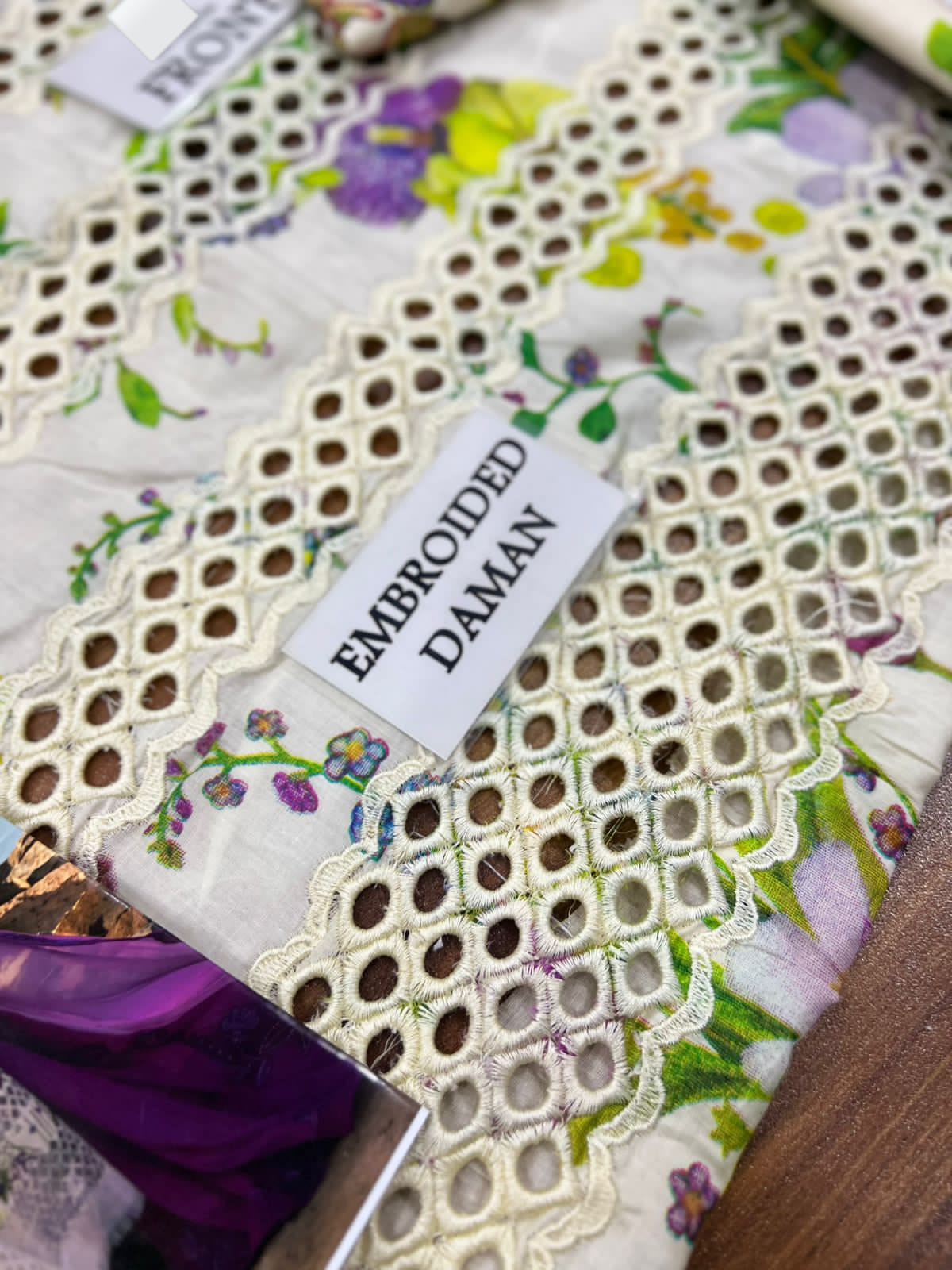â–ªHeavy Embroidered front chickenkari daman direct on fabric
