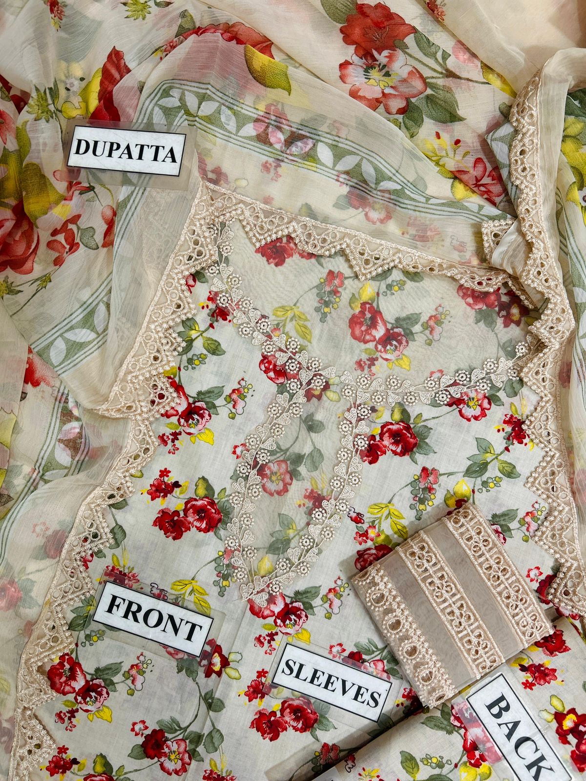 • ⁠Sleeves bunch embroidered