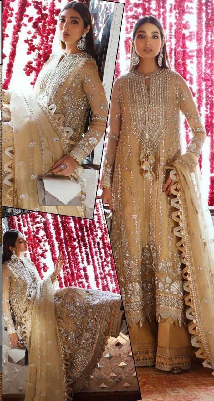 ✔Sleeves Fully Embroidered With Spangle Work