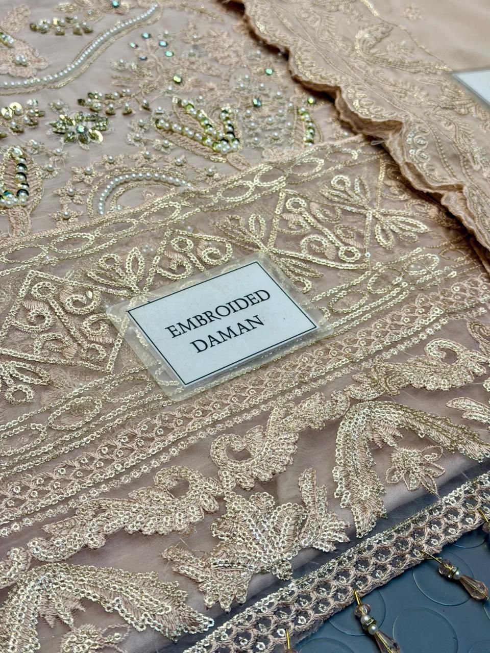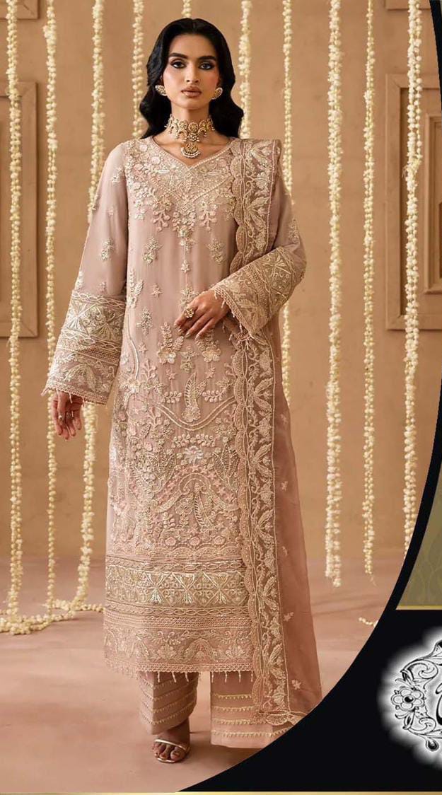 *chiffon plain back with fully heavy embroidered spengle work back daman boarder*