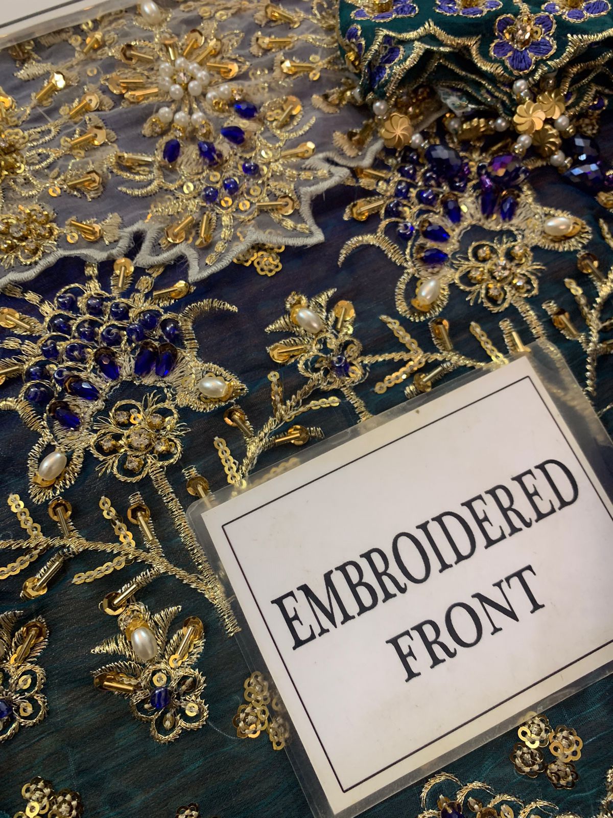 •Front Digital print Chiffon shirt with heavily embroidered work with heavy adda takai crystal work