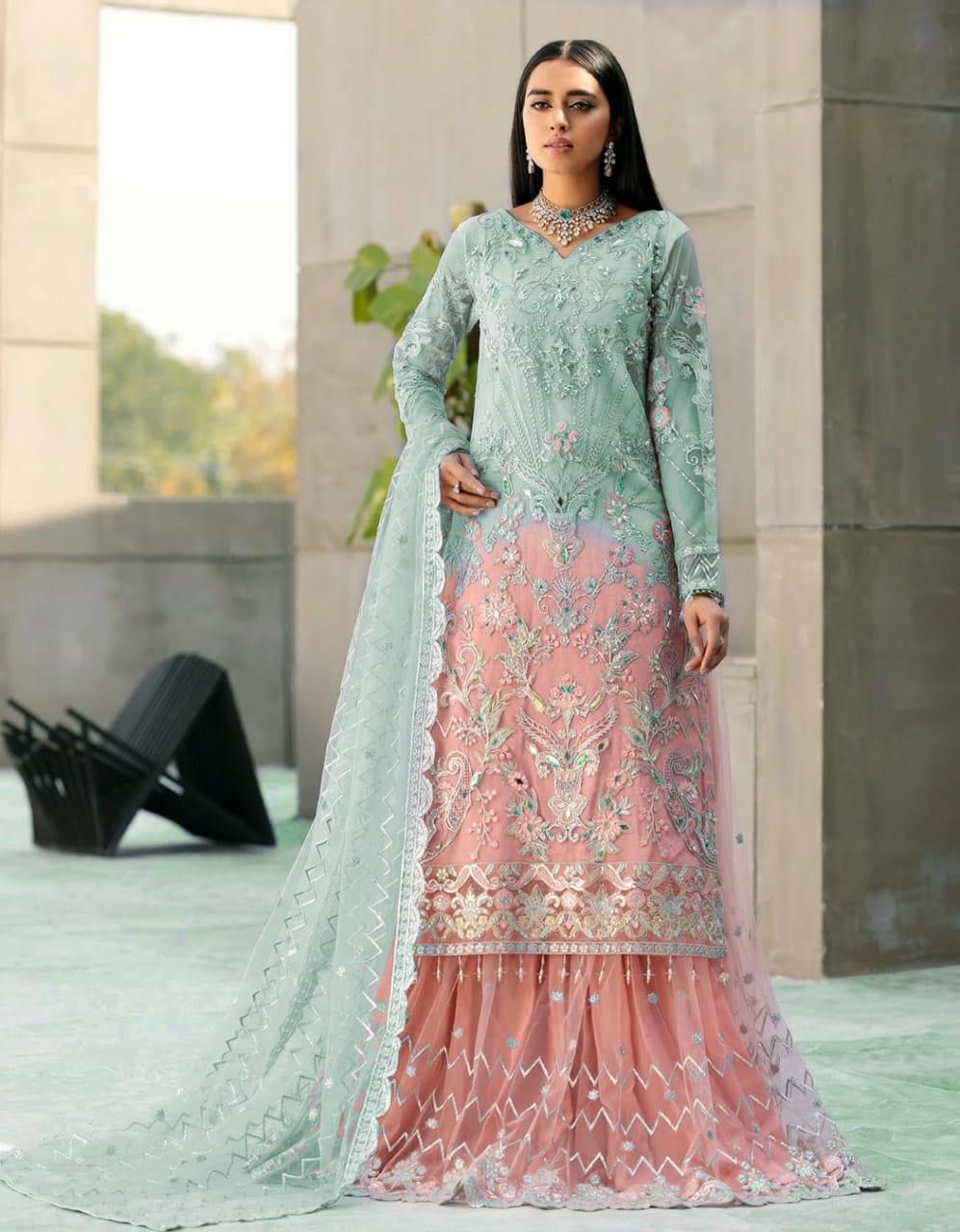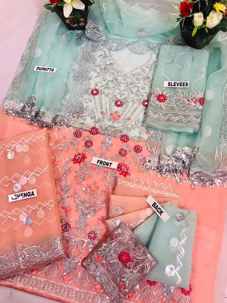 Orgenza fully heavy embroidered spengle work front with fully hand work heavy embroidered spengle work daman boarder with sequence work