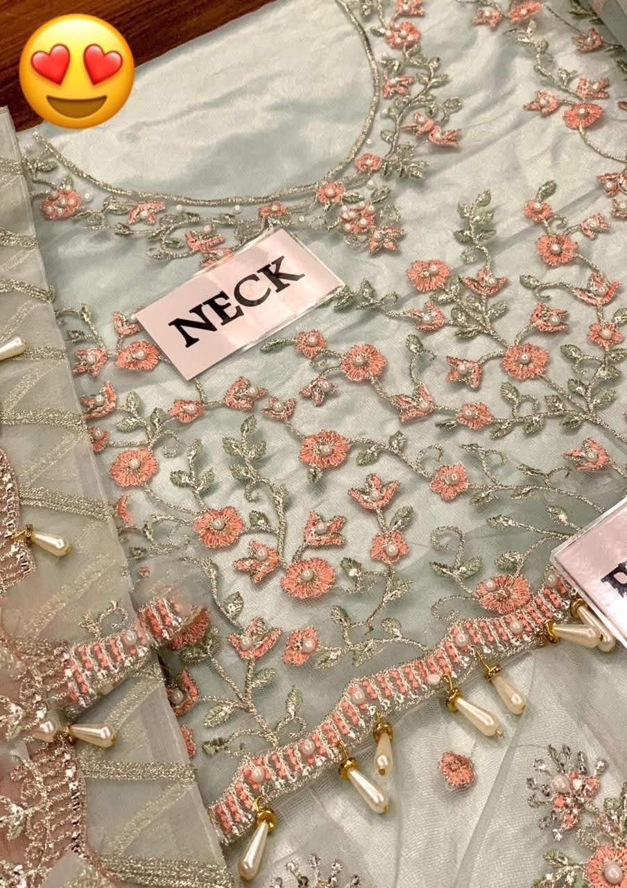 net fully heavy embroidered spengle work back with embroidered spengle work daman boarder