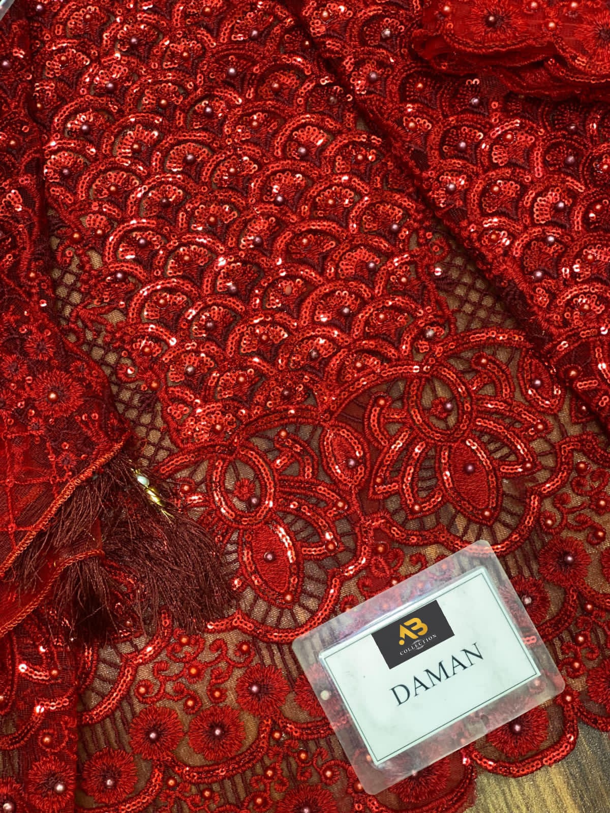 Dupatta Full Embroidered With Pearls Work And Four Side Hanging Tussels Attached