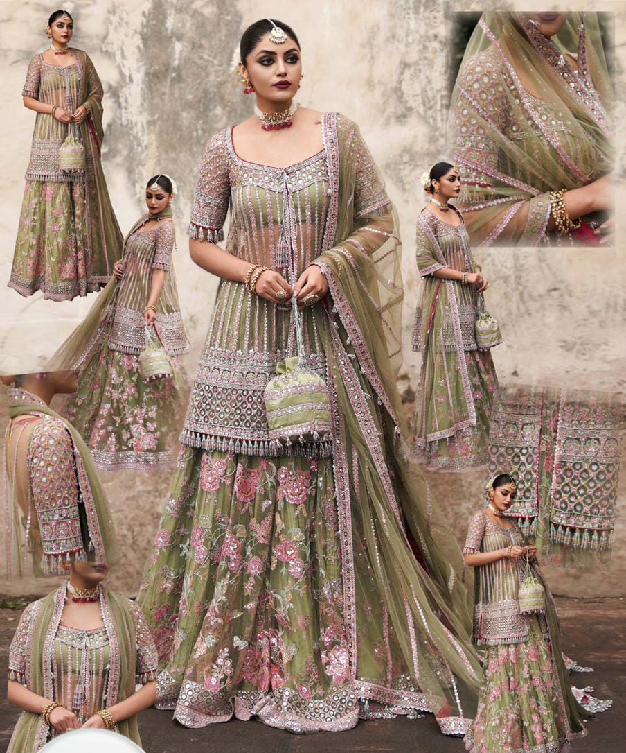 Fully sequence embroidered front on Net fabric very near to original with heavy Adda work