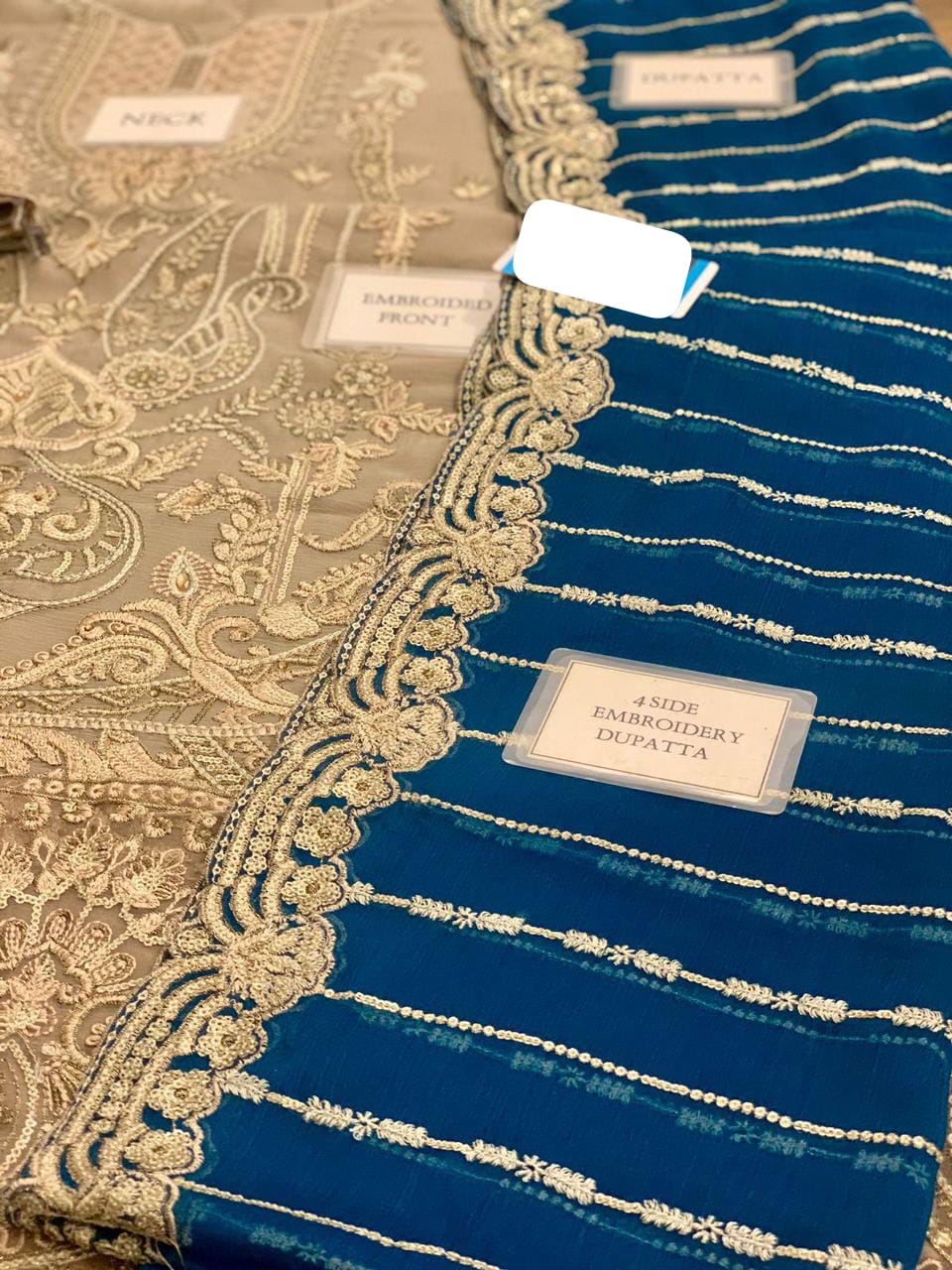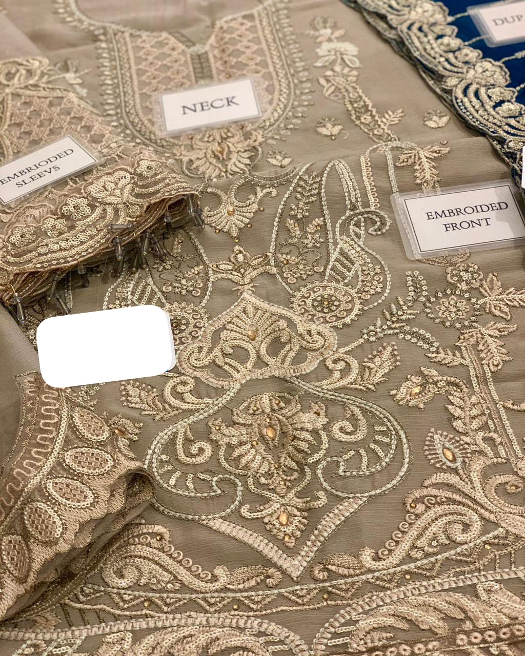 *chiffon fully heavy embroidered spengle work duphta with cut work*