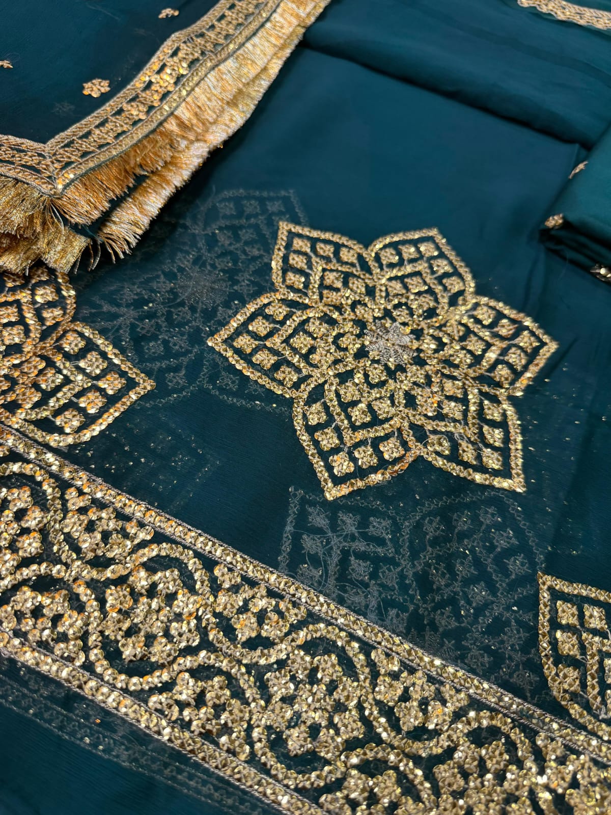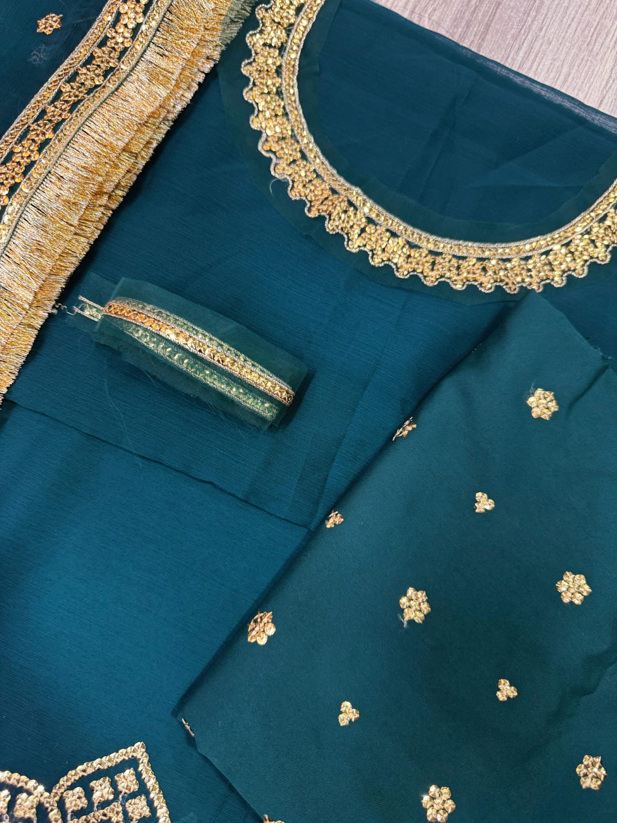 •Semi Pure Chiffon Sequence Embroidered Dupptaa with 4Side Border & Kiran lace