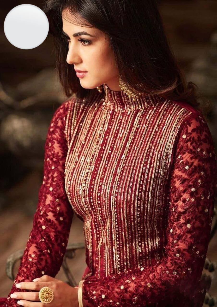 Front Heavy sequence n zari embroidery on chiffon stuff