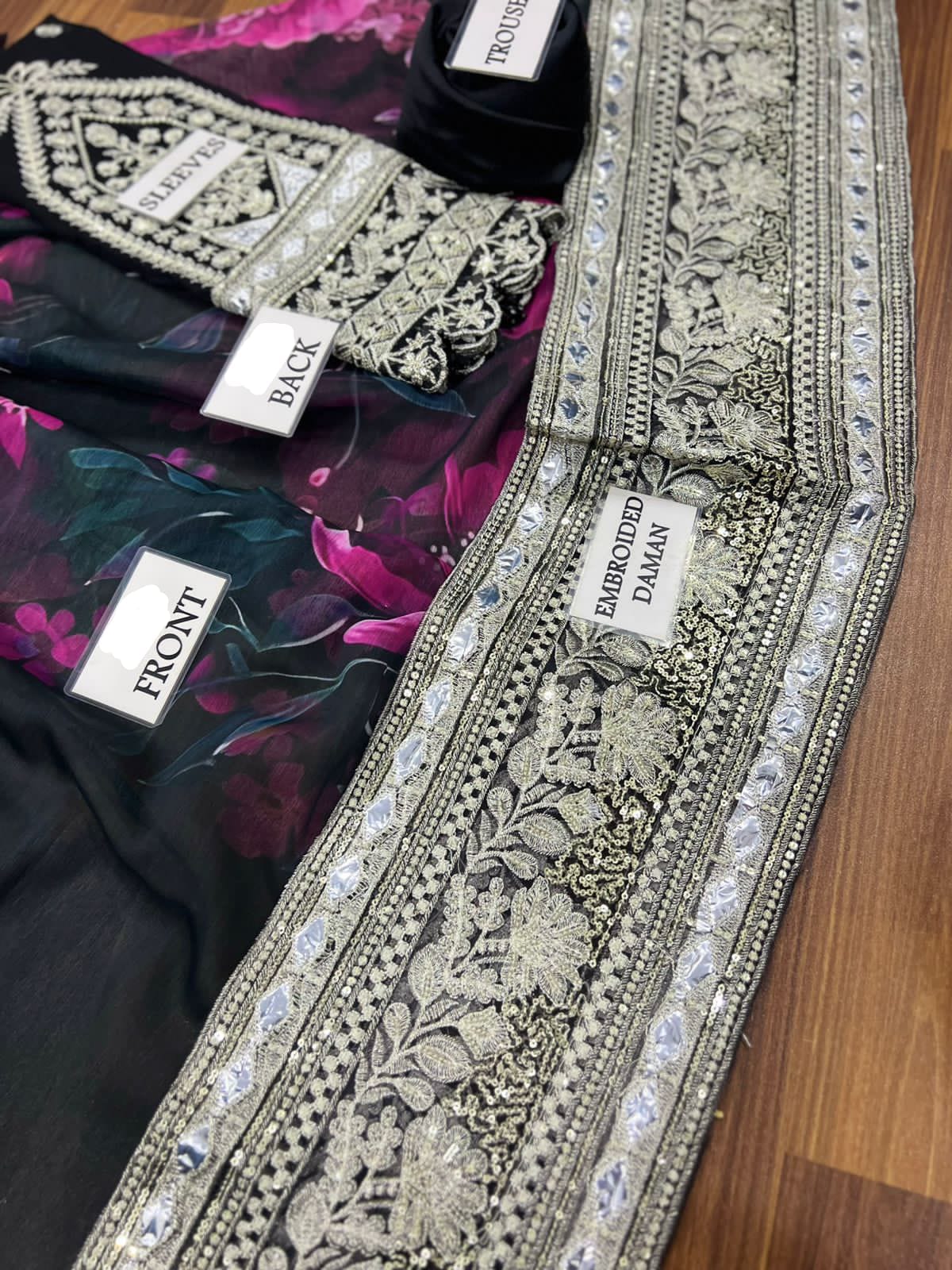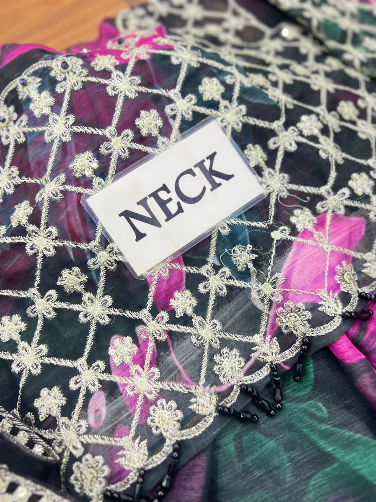 Sleeves Heavy embroidered with foil work with hanging tussles