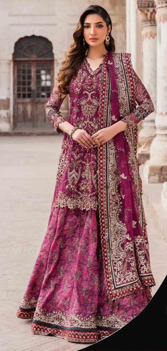 *chiffon fully heavy embroidered spengle work centre panel with fully hand emblishment adha work with left & right heavy embroidered spengle work panel attach fully hand emblishment adha work with heavy embroidered spengle work daman boarder with fully hand emblishment adha work*