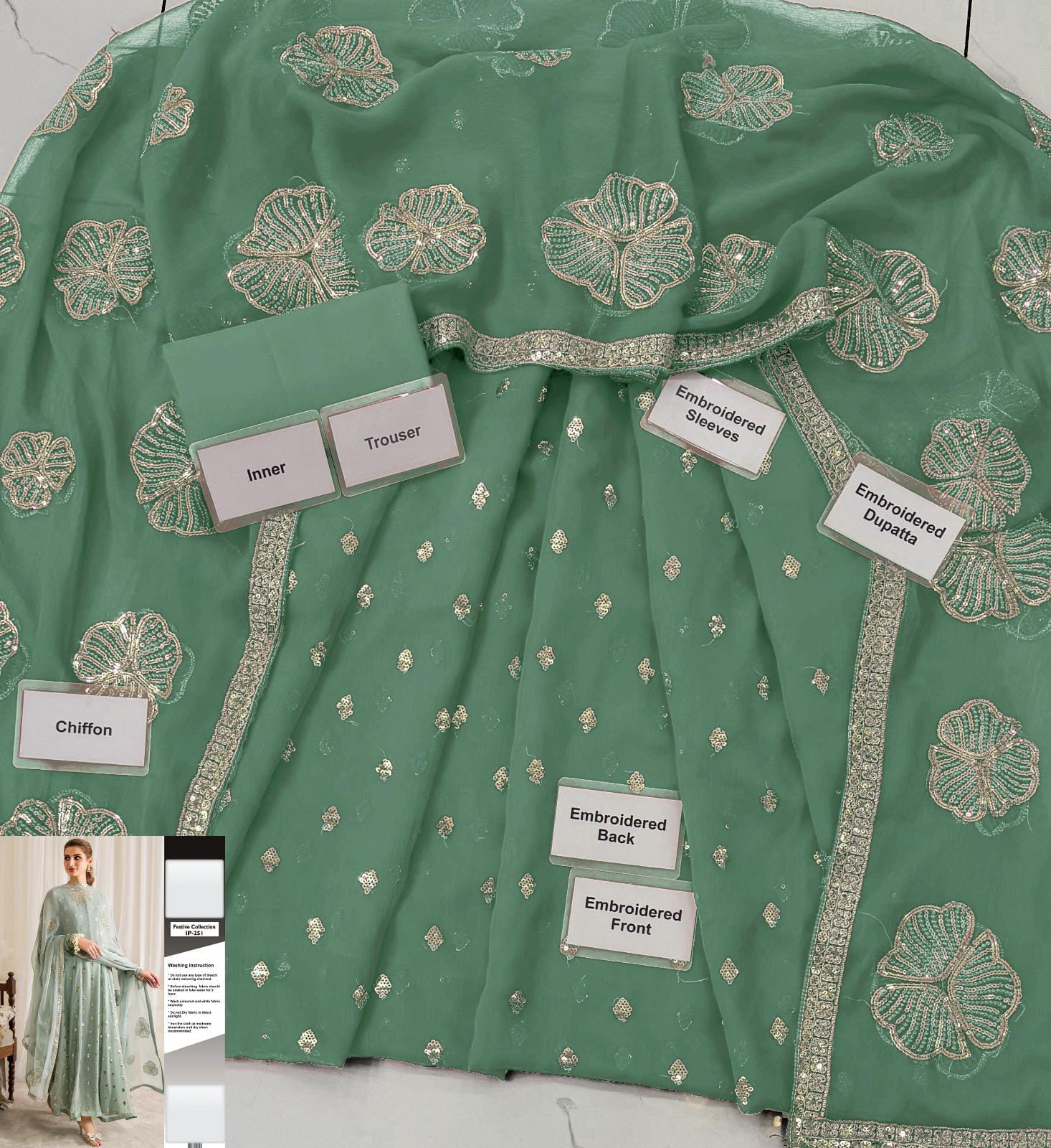 • Chiffon Embroidered Front