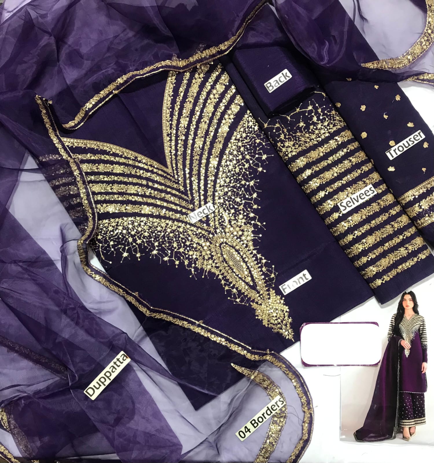 ▪️Fully Heavy Embroidery Raw silk Front