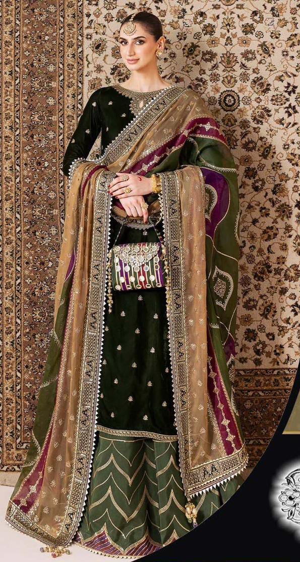 *velvet fully heavy alternet embroidered spengle work back with embroidered spengle work back daman lace*