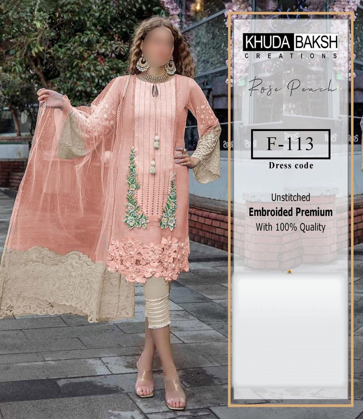 LAWN CHICKENKARI FRONT WITH EMBROIDERED EMBELISHED WITH 3D HANDMADE FLOWERS ATTACHED ALONG WITH EMBROIDERED 3D FLOWERS CUTWORK BORDER