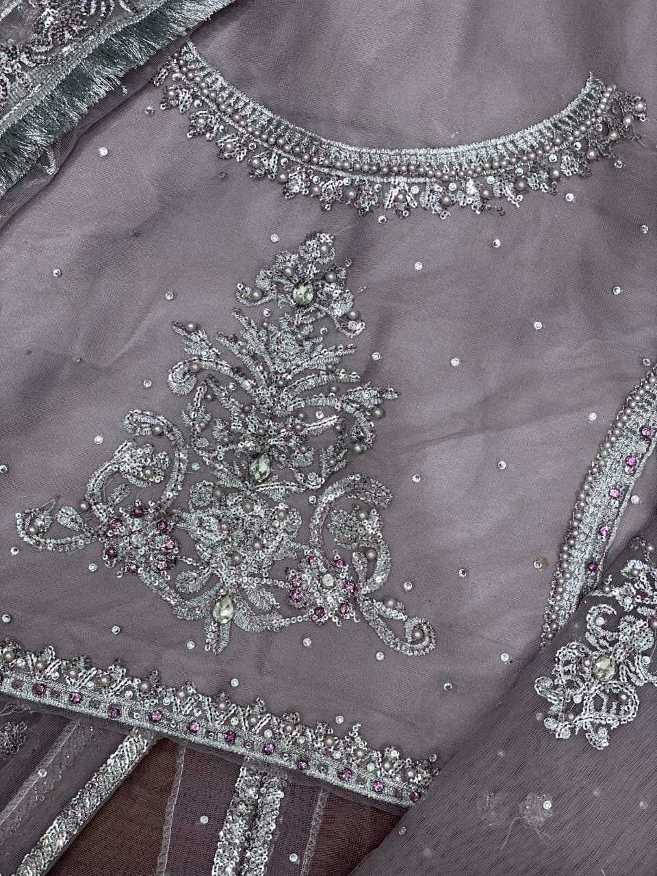 Heavy Front Embroidered body with hand work & punched pearls attached