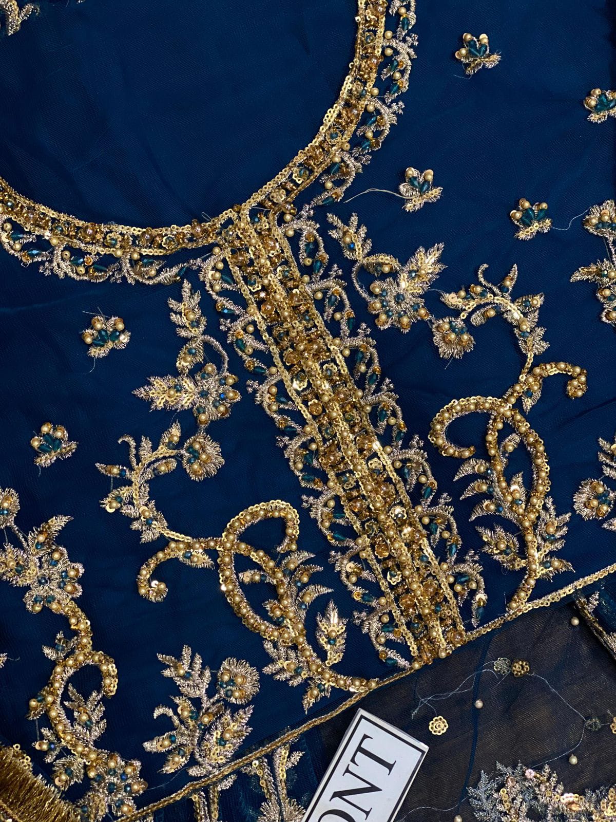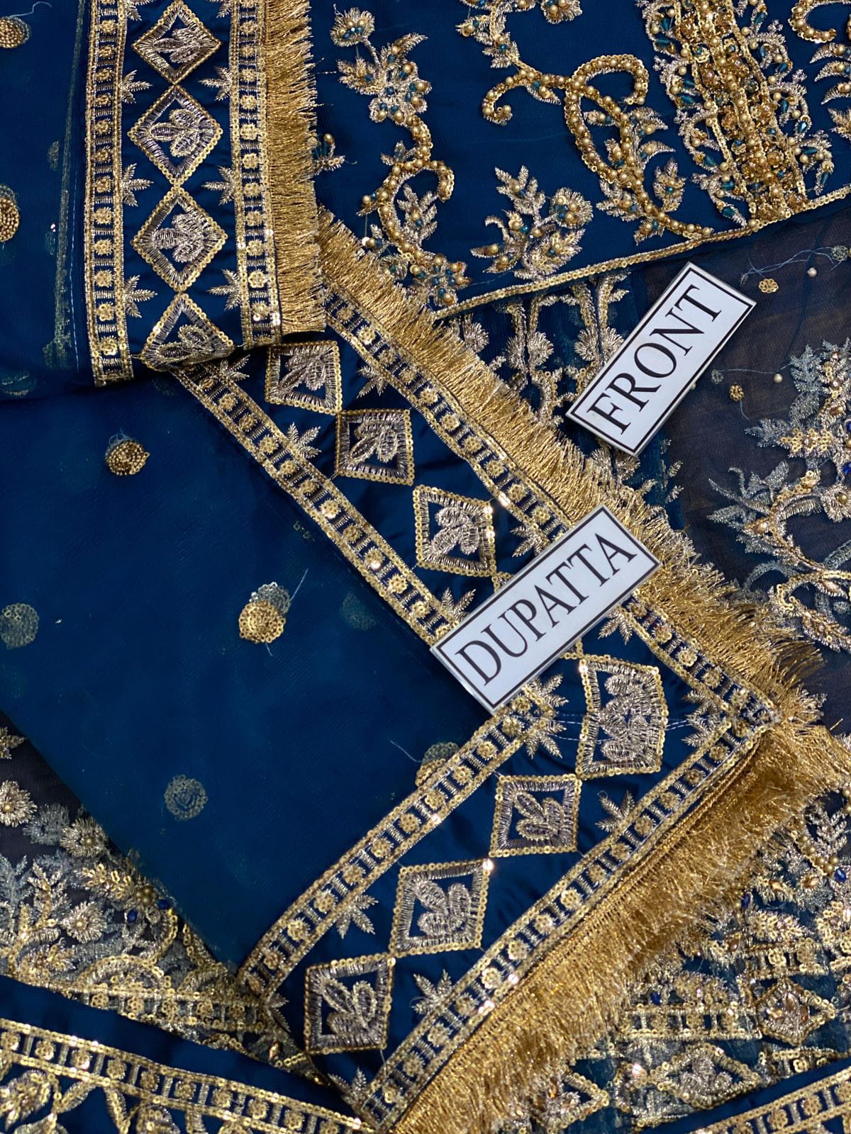 *Front* fully embroidery having Sequence work on it {as original pattern} with attached work peral work each side 8 kali
