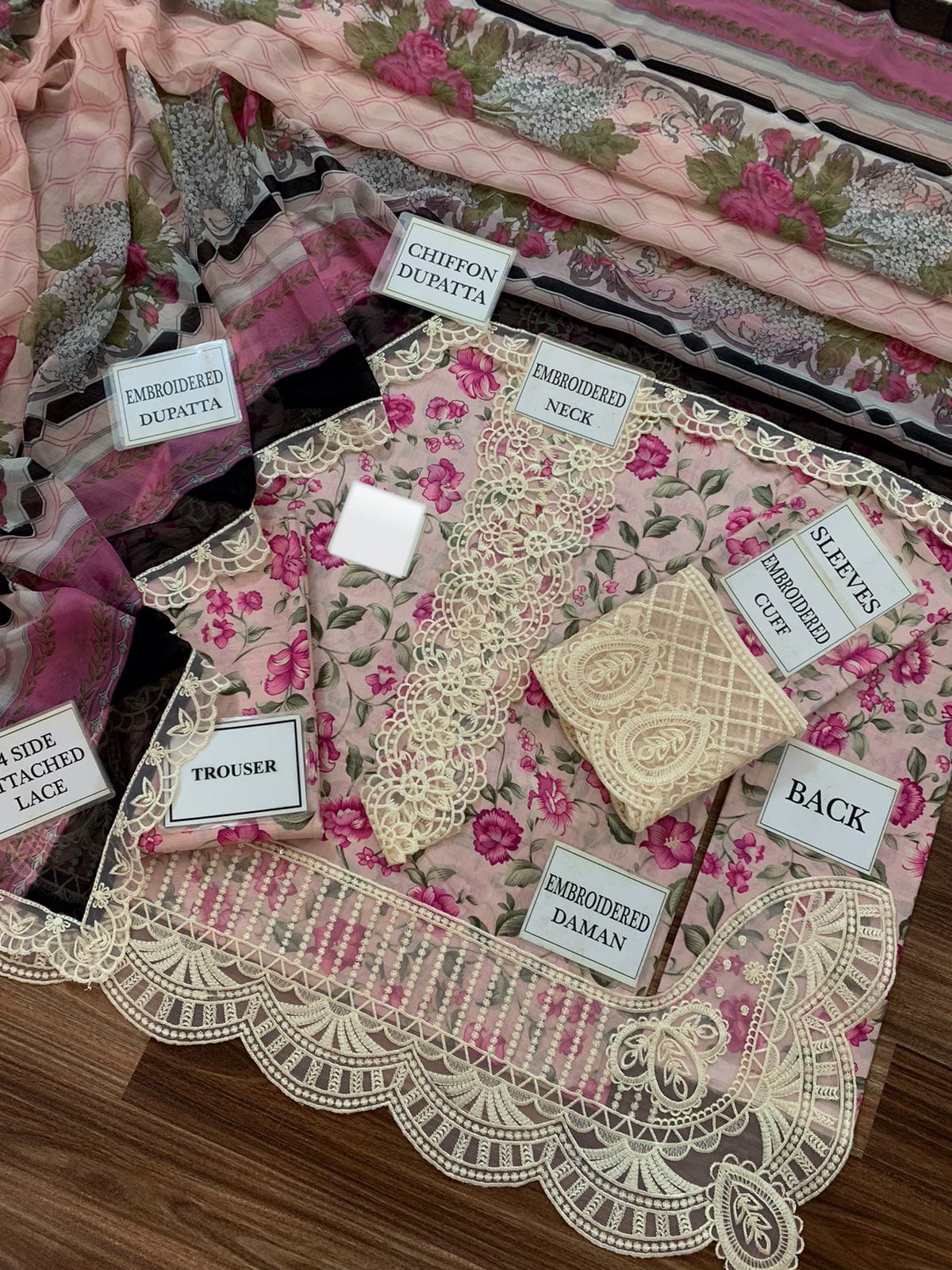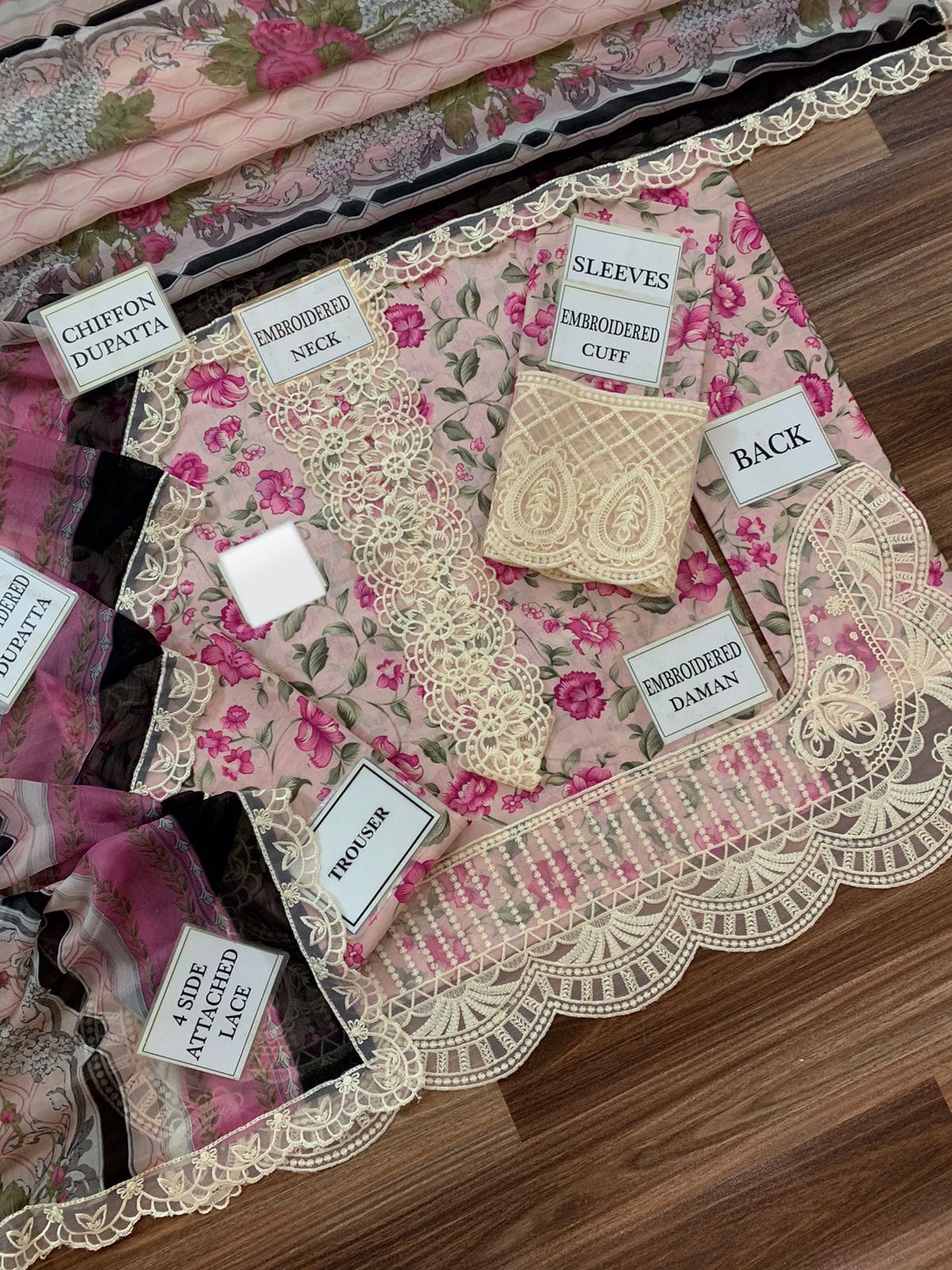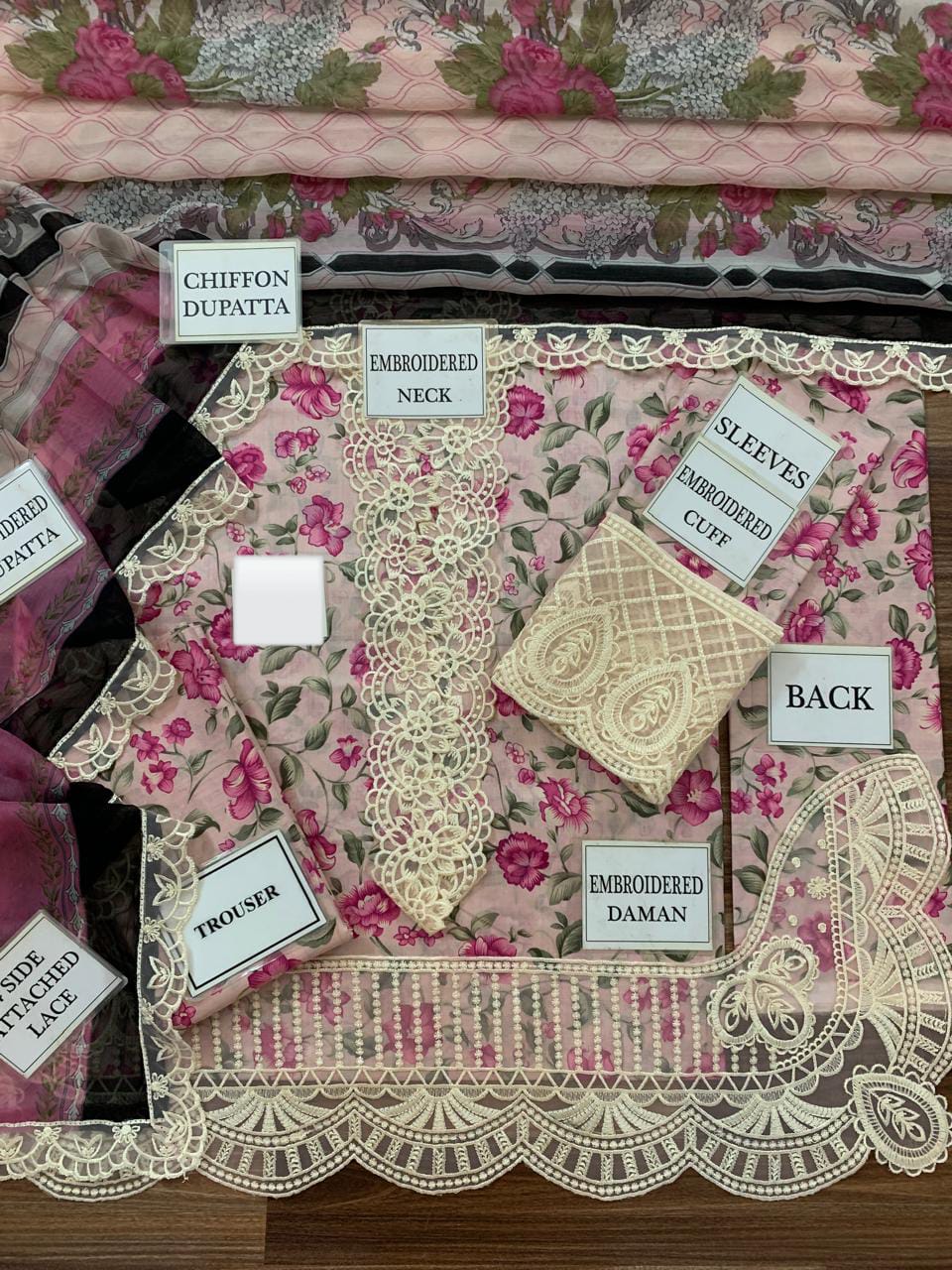PRINTED LAWN FRONT WITH HEAVY EMBROIDERED NECK/DAMAN PATCHES