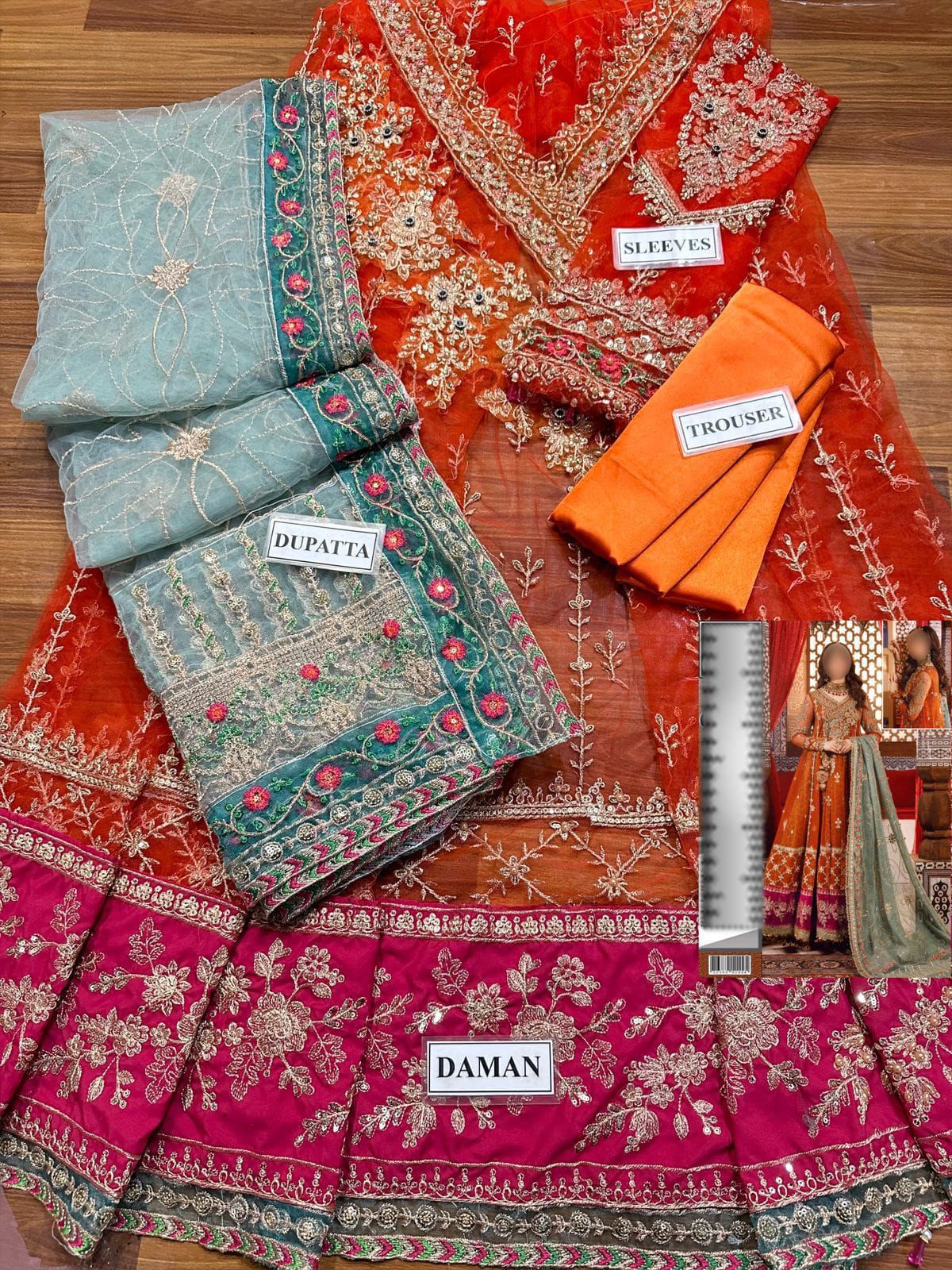 BRAND:MARIA.B net maxi embroidered hand work embellished luxury unstitched 3pc✓