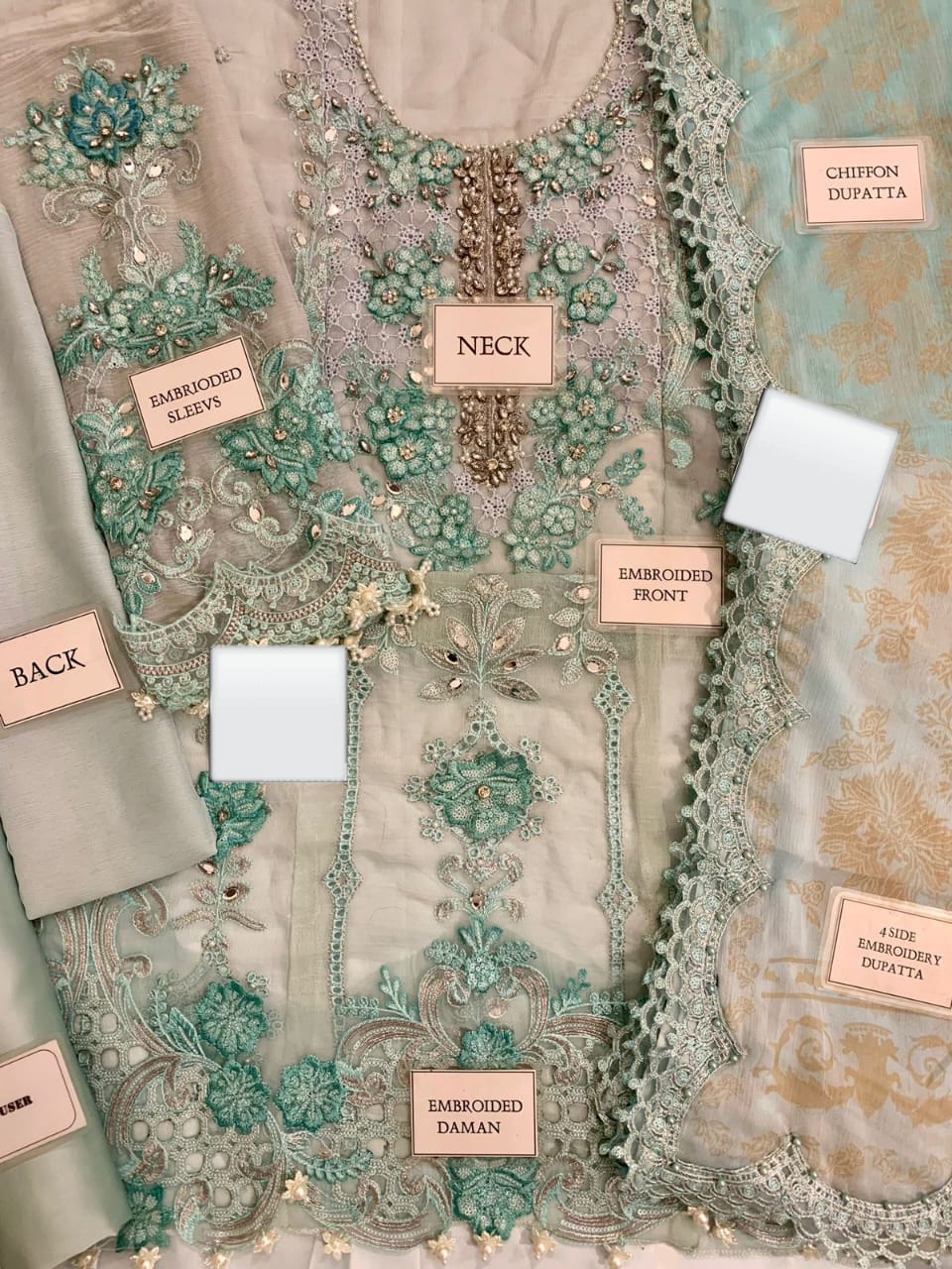 *Chiffon tie & die fully heavy embroidered spengle work centre panel attach with embroidered spengle work 3d flower attach with fully hand emblishment adha work with fully heavy embroidered spengle work side panel attach with fully heavy embroidered spengle wrok daman boarder with fully cut work with fancy tulses attach*
