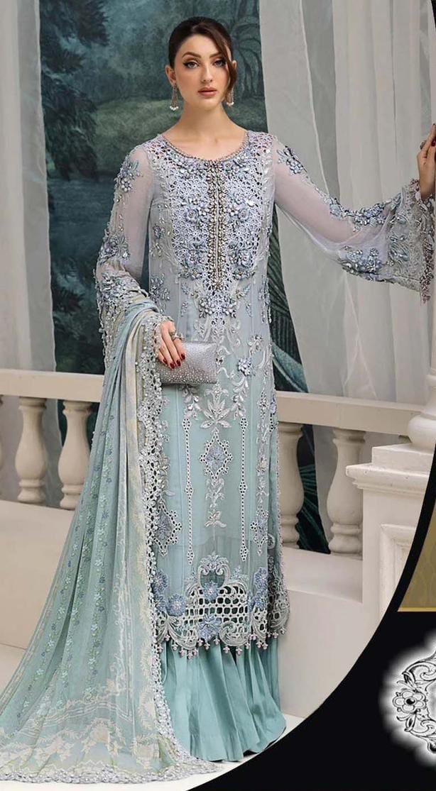 *chiffon tie & die fully heavy alternet embroidered spengle work sleeves with fully hand emblishment adha work & 3d embroidered spengle work flower attach with fancy tulses attach*