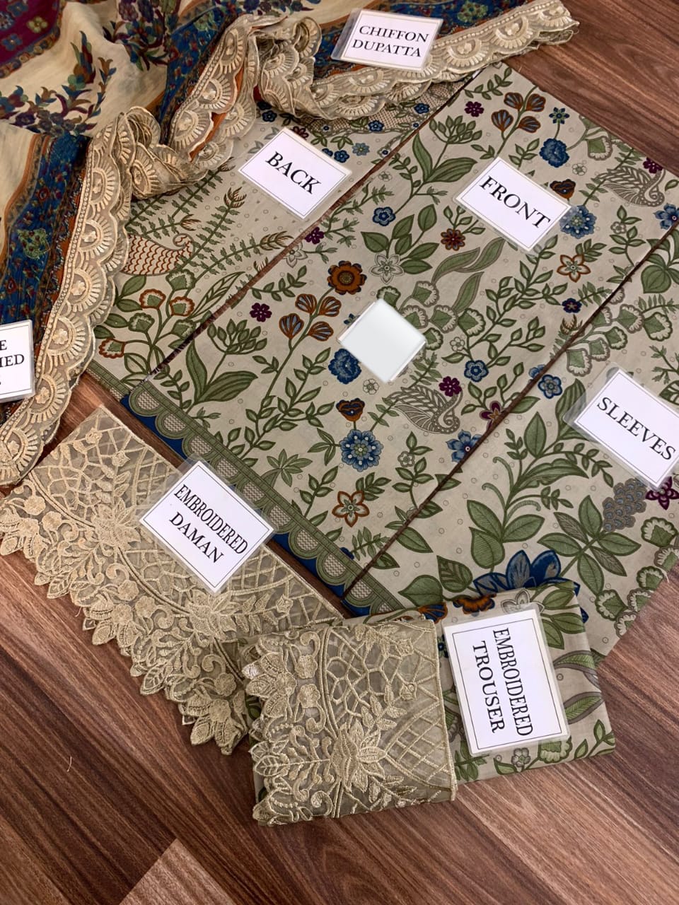 *Printed lawn front with heavy embroidered spengle work daman boarder*