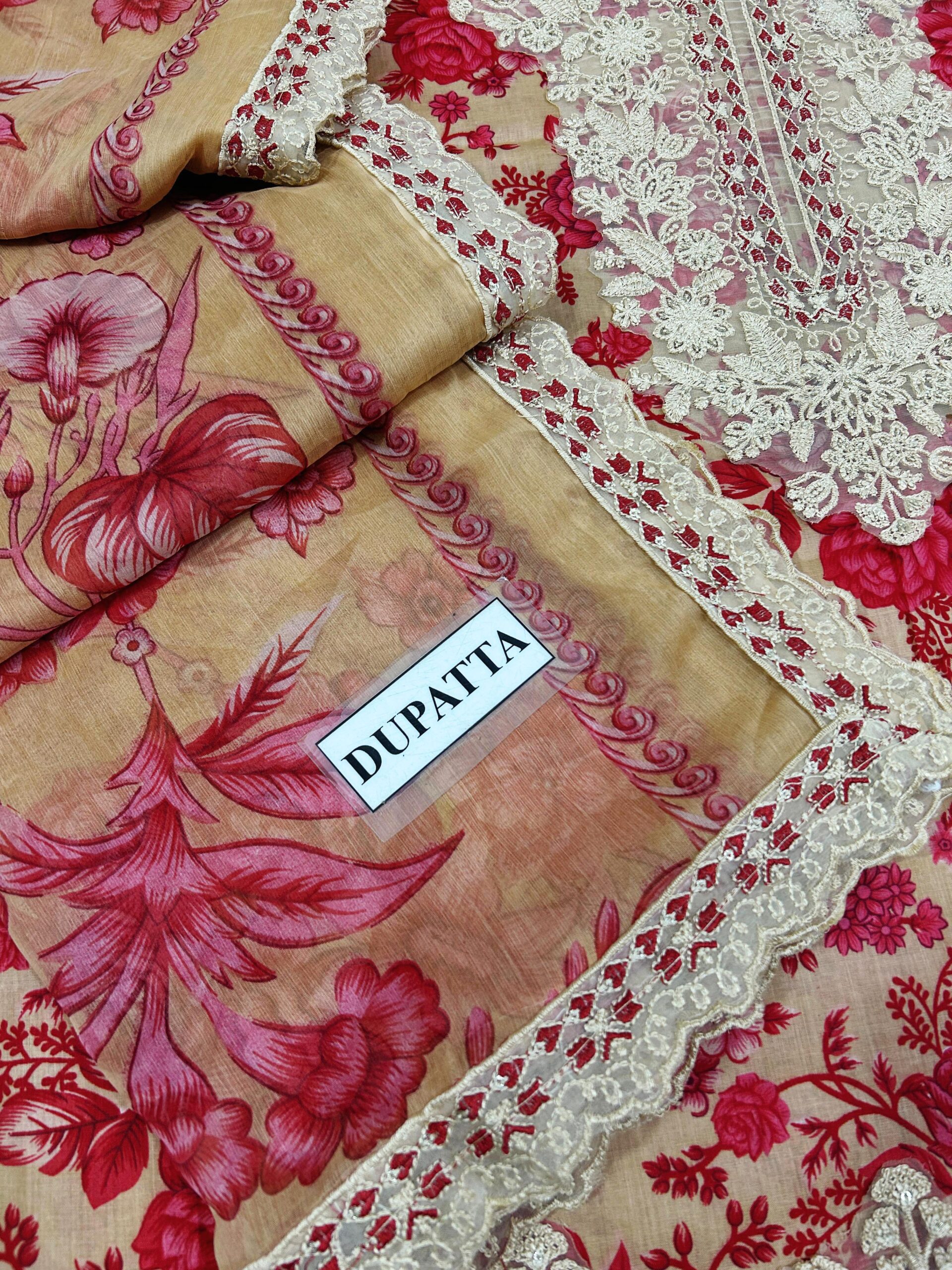 •Printed Chiffon Dupatta with 4 side embroidered Ready to wear