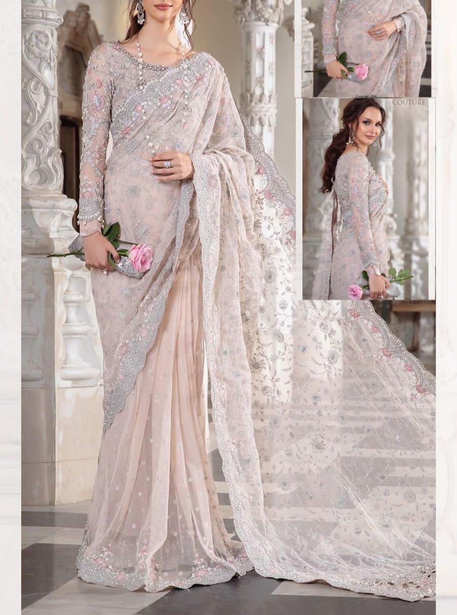 Heavy Embroidered Net Selvees With Heavy Adda Work With Cut Work selvees Cuff and Hanging Tuselss