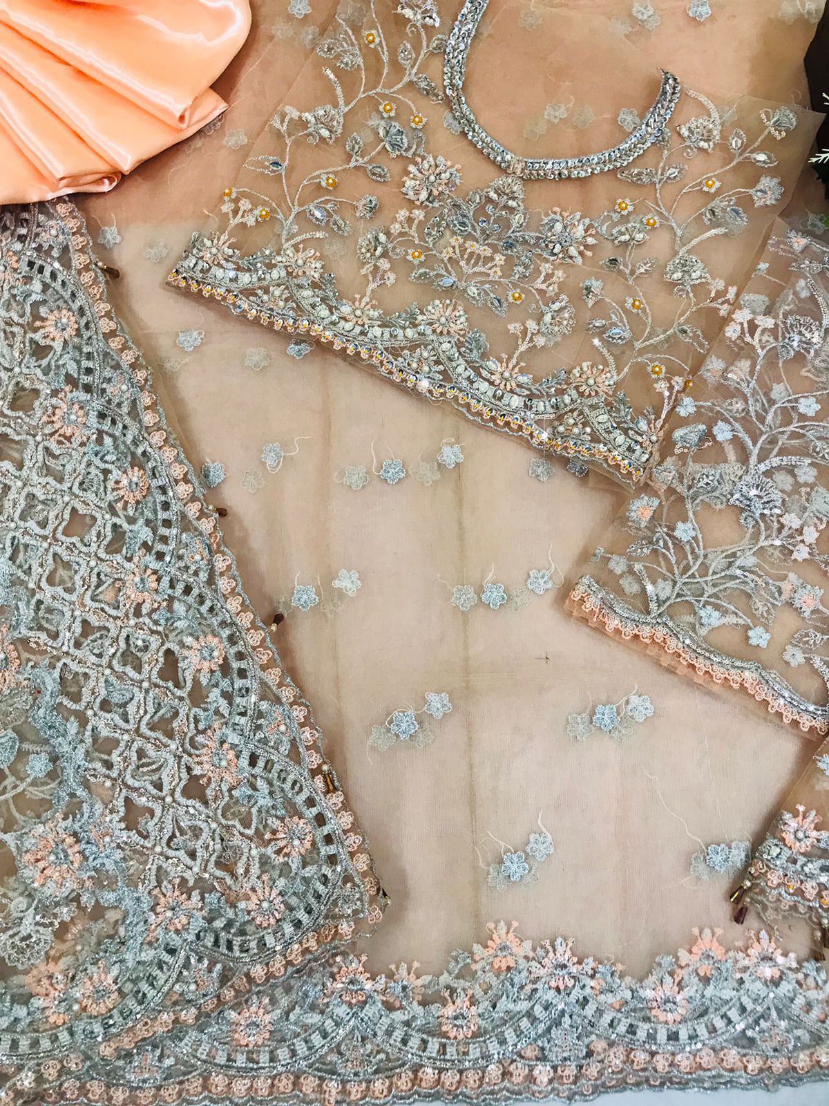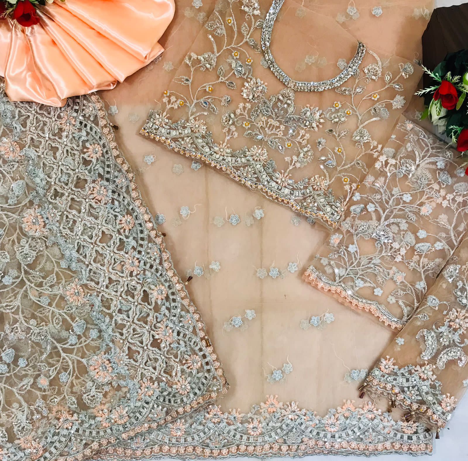 Fully Heavy Embroidered Net Front Body With Adda Work