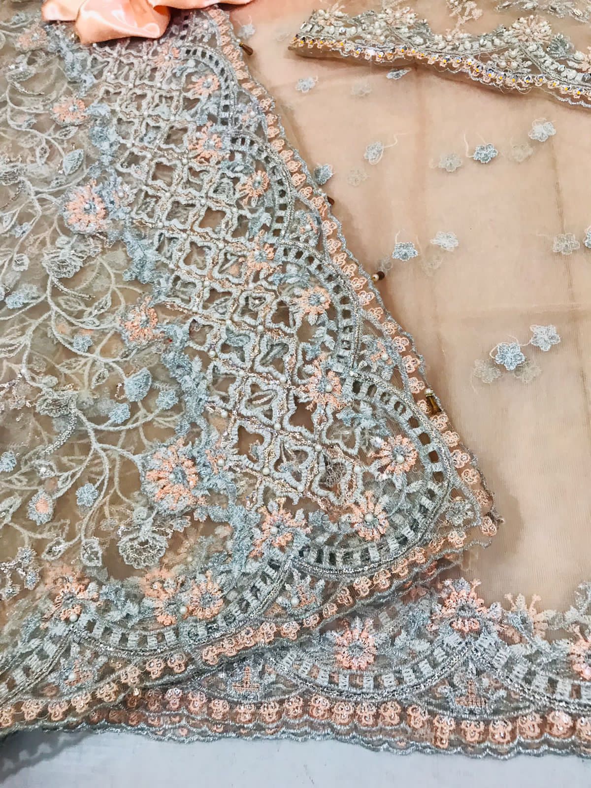 Fully Heavy Embroidered Net Front or Back With Cut Work Border